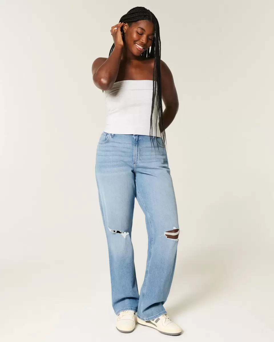 Te wygodne jeansy mają wysoki stan i luźną nogawkę. Średni stopień sprania, przetarcia, zagniecenia i rozdarcia. Importowane.