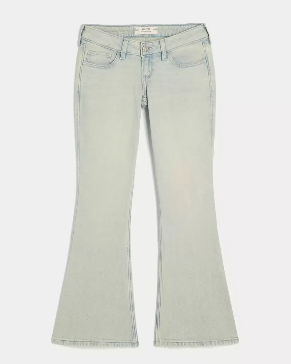 Wygodne jeansy z denimu Vintage Stretch, z bardzo niskim stanem i rozszerzanym dołem. Lekkie przetarcia z przetarciami i zagnieceniami. Importowane.