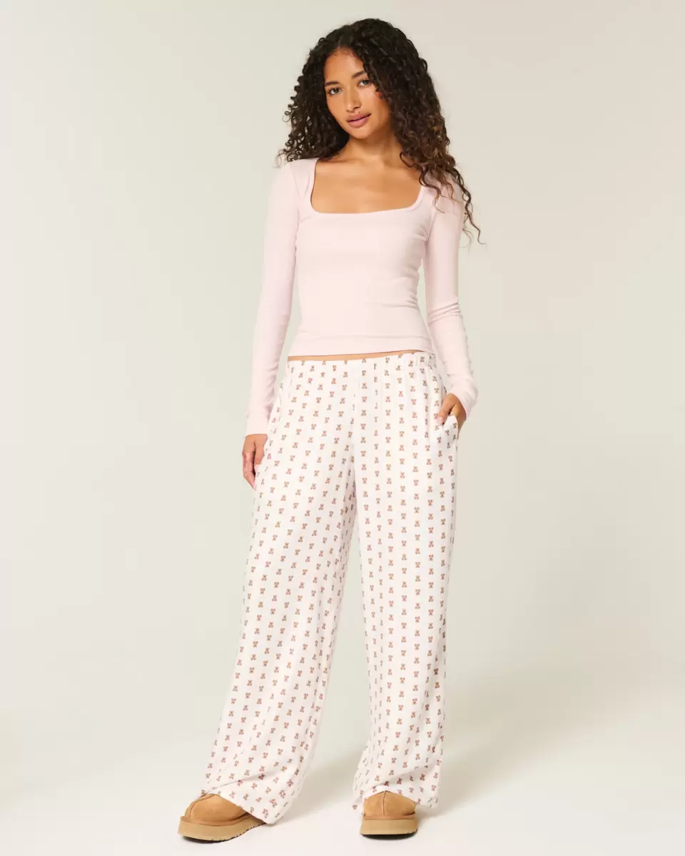 Supermiękkie flanelowe spodnie z luźnymi nogawkami. Miękki pas z logo po wewnętrznej stronie i kieszeniami. Produkt importowany.