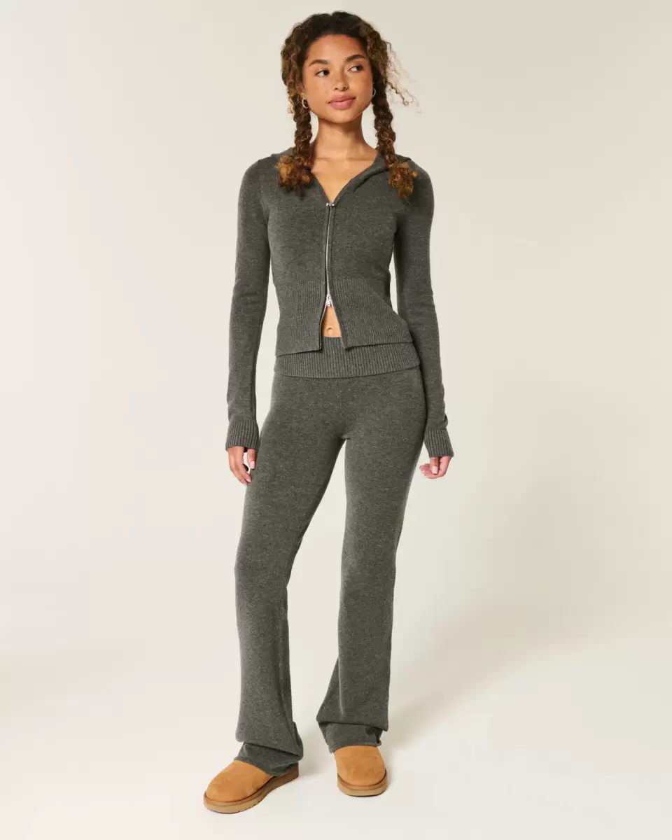 Wygodne i supermiękkie spodnie swetrowe z zakładką w pasie, wąskimi nogawkami i nogawkami zakończonymi nogawkami. Importowane.