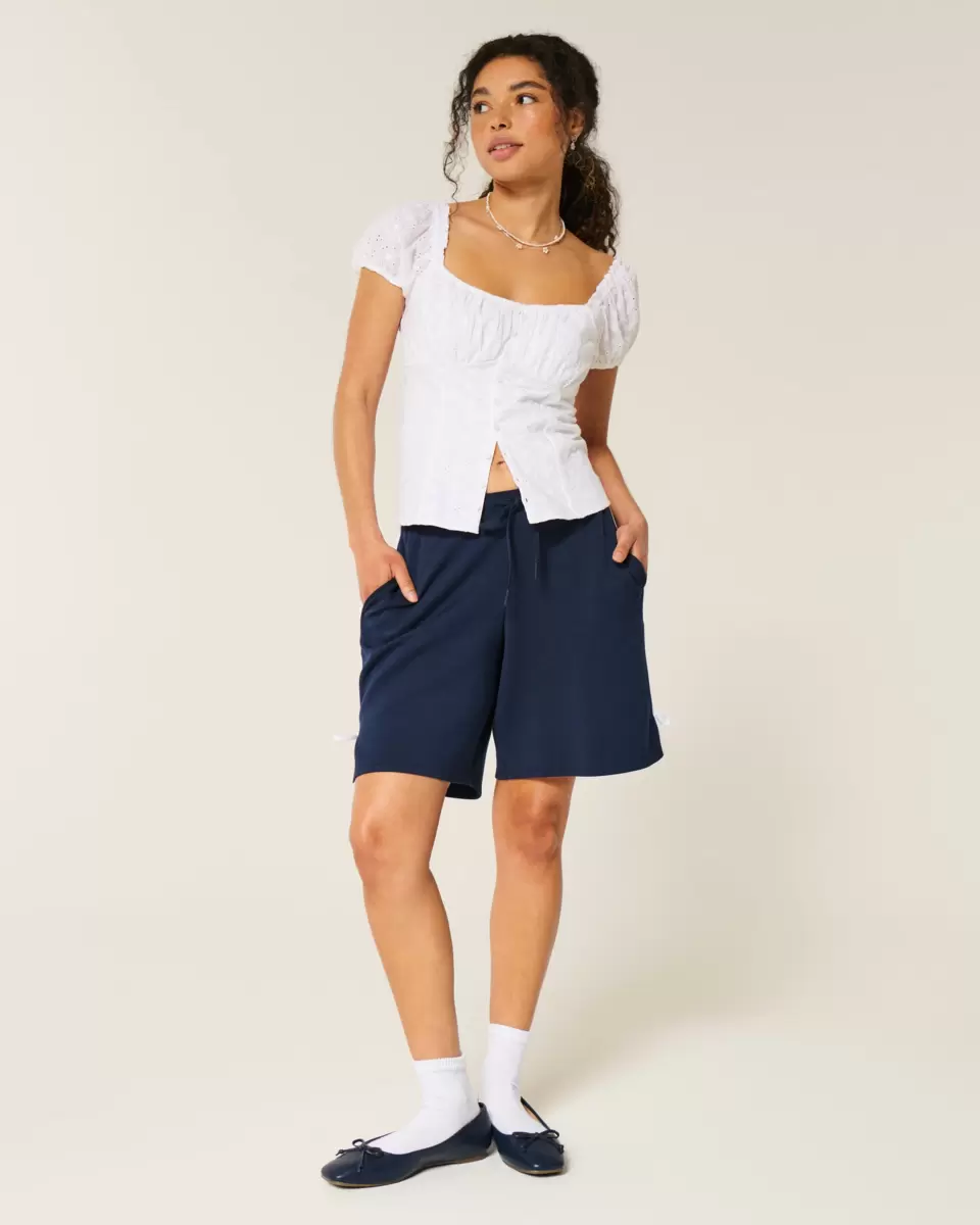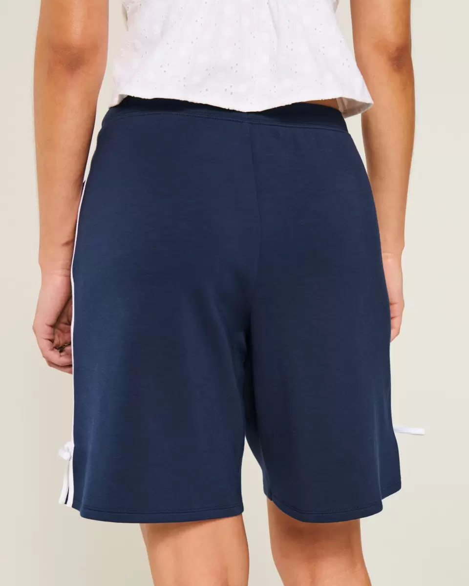 Wygodne szorty wykonane z naszego supermiękkiego materiału Cooldown. Ściągacz w pasie, kokardki z boku.