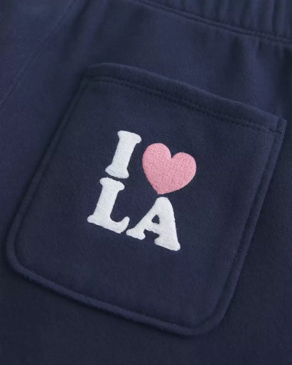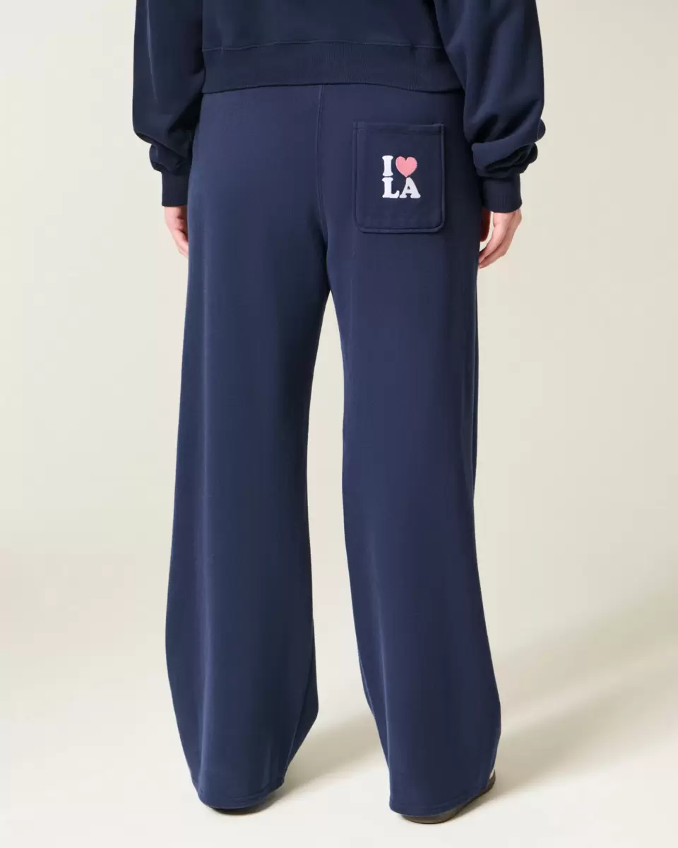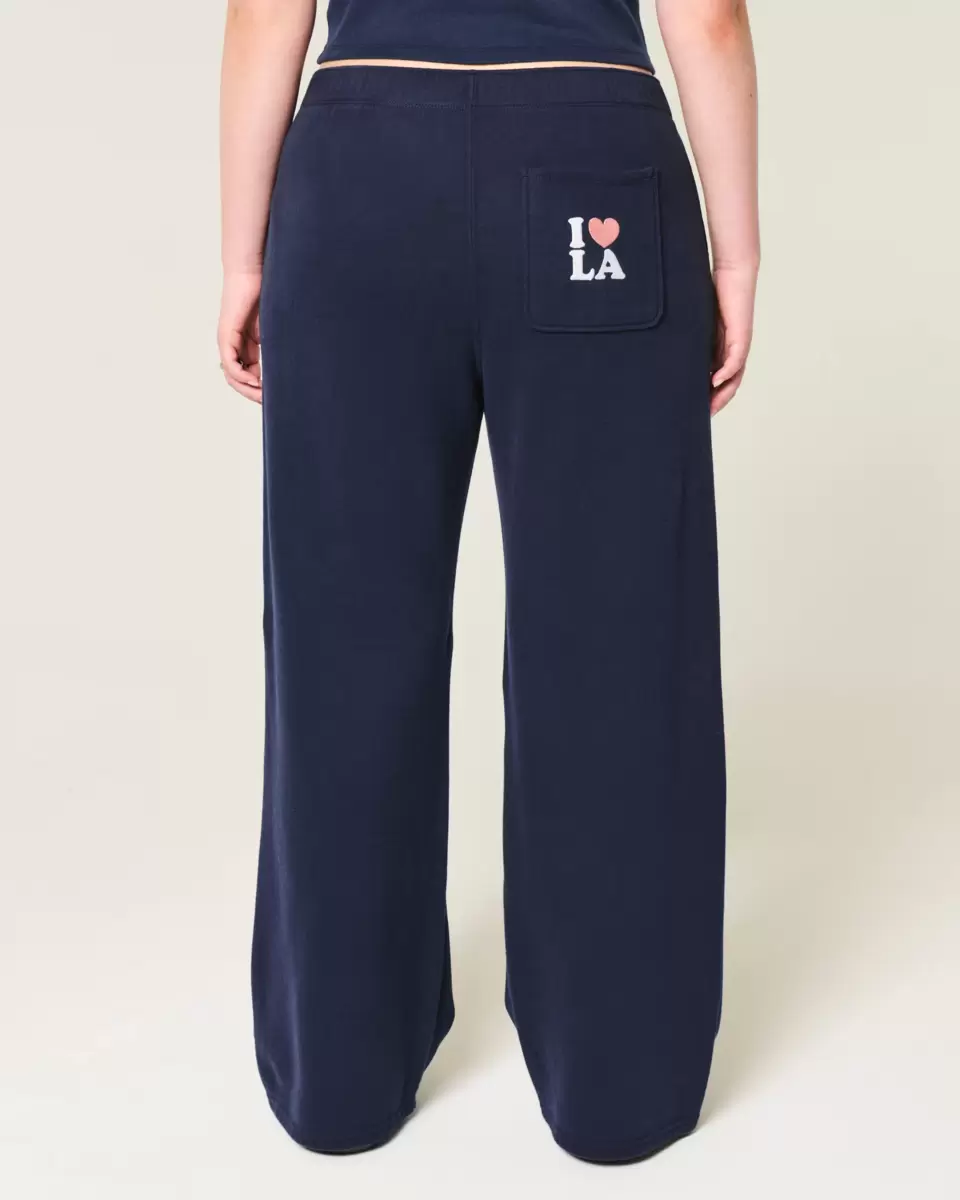 Supermiękkie, polarowe spodnie dresowe z szerokimi nogawkami i ściągaczem w pasie. Kieszenie, haft graficzny „I Heart LA” na tylnej kieszeni.