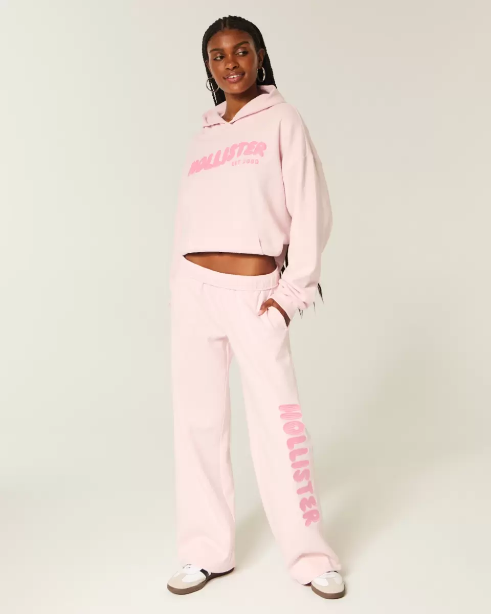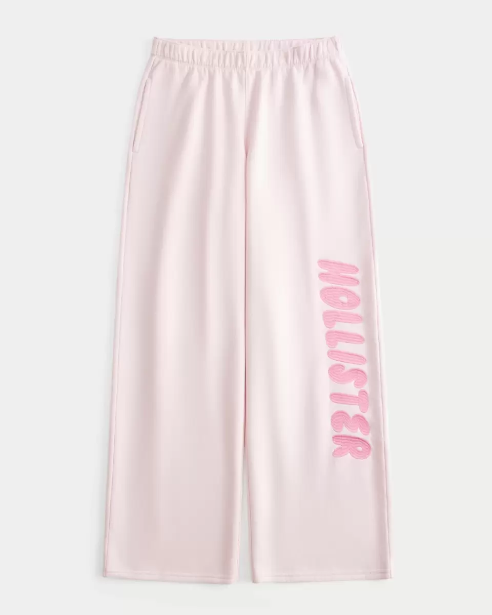 Supermiękkie, polarowe spodnie dresowe z szerokimi nogawkami i średnim stanem ze ściągaczem. Wyszywane logo, kieszenie. Produkt importowany.