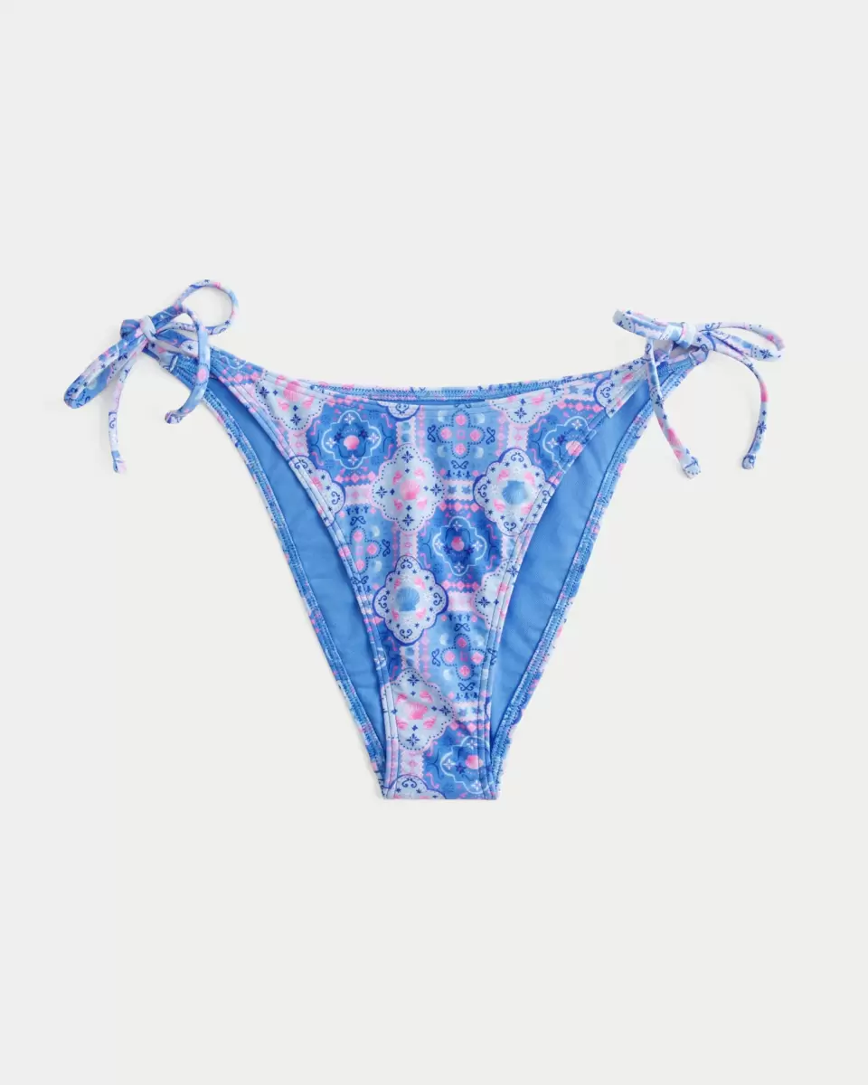 Urocze majtki od bikini z wiązaniami po bokach i wzorem na całej powierzchni. Elastyczne, zakrywające. Produkt importowany.