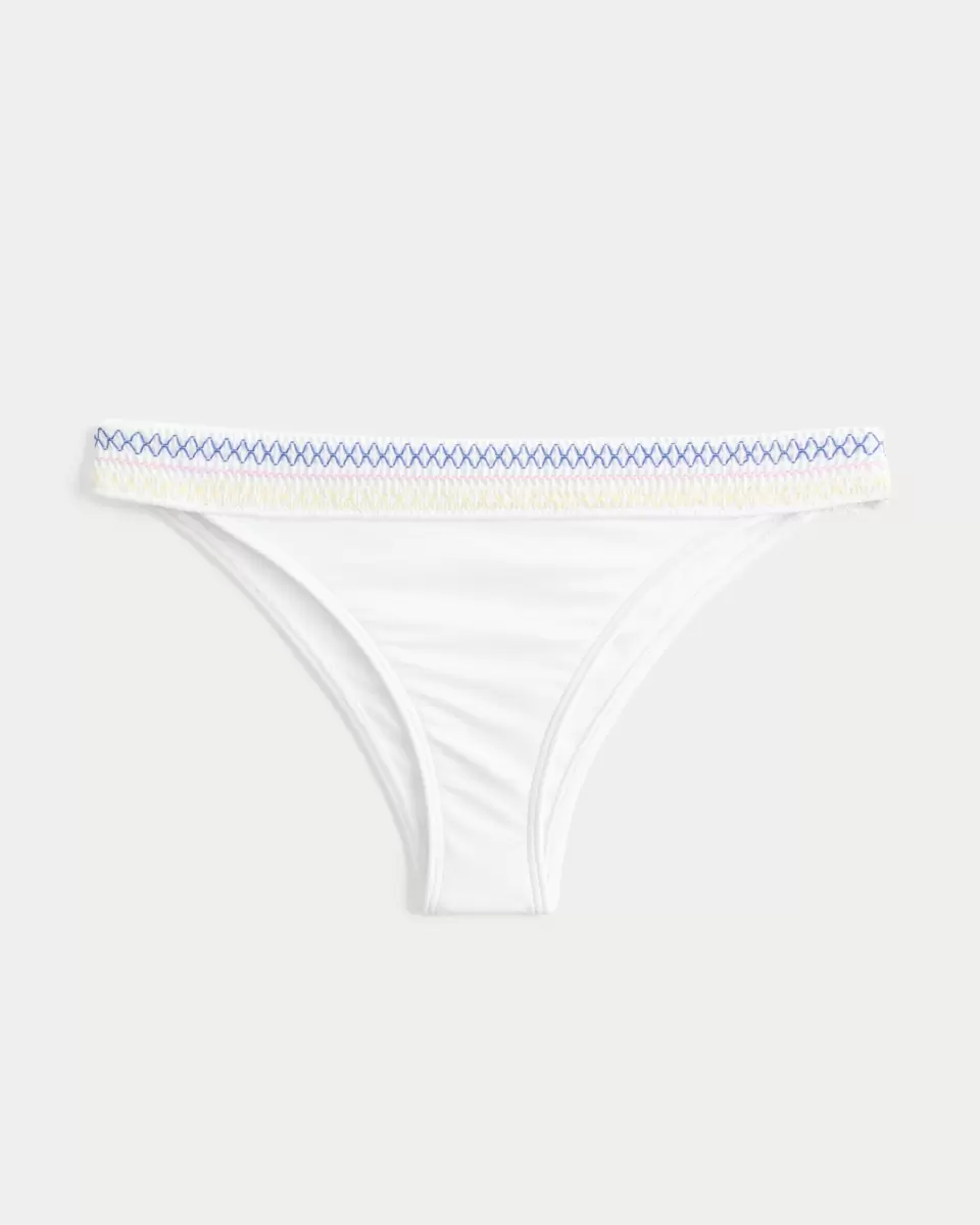 Urocze majtki od bikini z miękkim marszczeniem w talii. Wysoki krój, minimalna ilość krycia, kolorowe przeszycia. Produkt importowany.