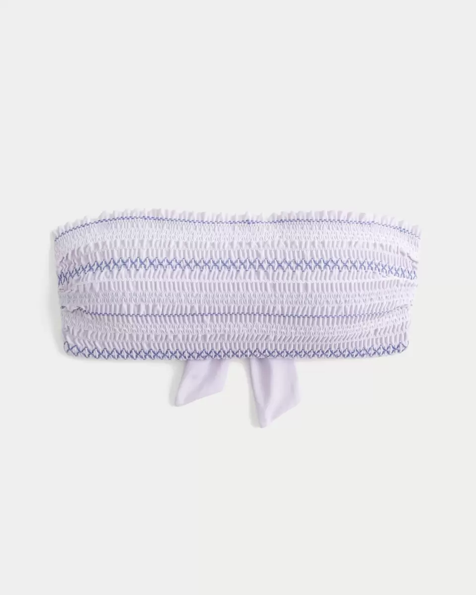 Ten uroczy stanik od bikini ma sylwetkę typu bandeau i kolorowe przeszycia. Miękki, marszczony materiał, wiązanie, wyjmowane wkładki. Importowane.