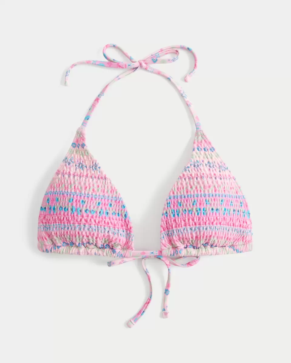 Ten uroczy stanik od bikini ma ramiączka i trójkątny krój. Miękki, marszczony materiał, zapięcie na wiązanie, wyjmowane wkładki. Importowane.