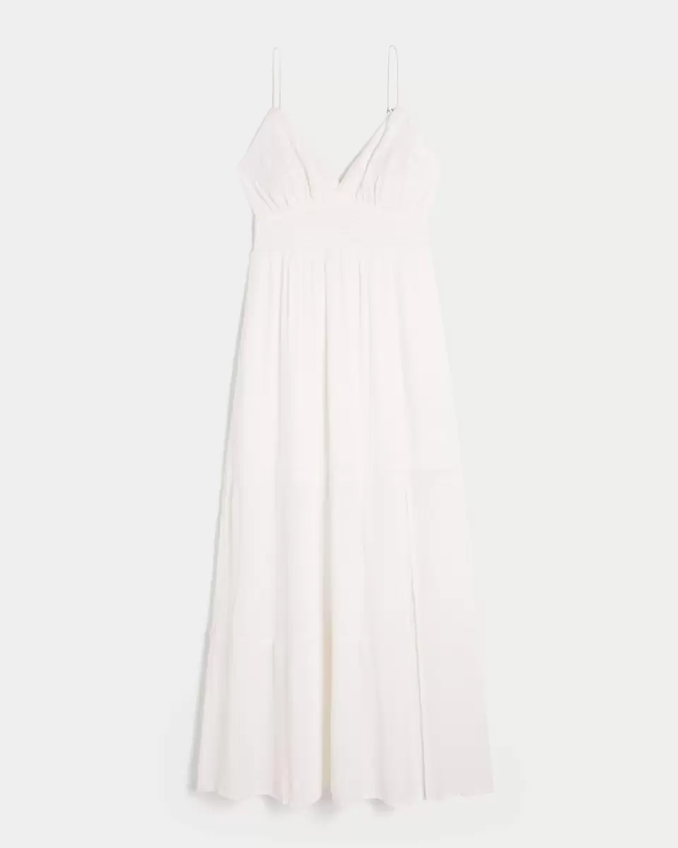 Ta śliczna i supermiękka sukienka maxi ma haftowane detale na biuście. Rozcięcie u dołu, regulowane ramiączka, miękkie marszczenie w talii.