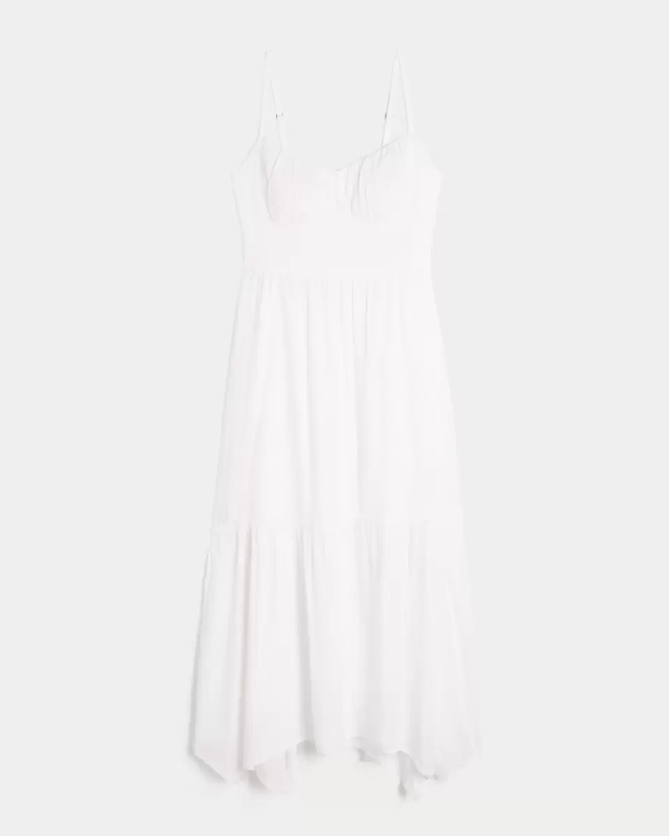 Ta zwiewna i supermiękka sukienka o długości maxi jest uszyta z materiału o fakturze przypominającej kropeczki. Regulowane ramiączka.
