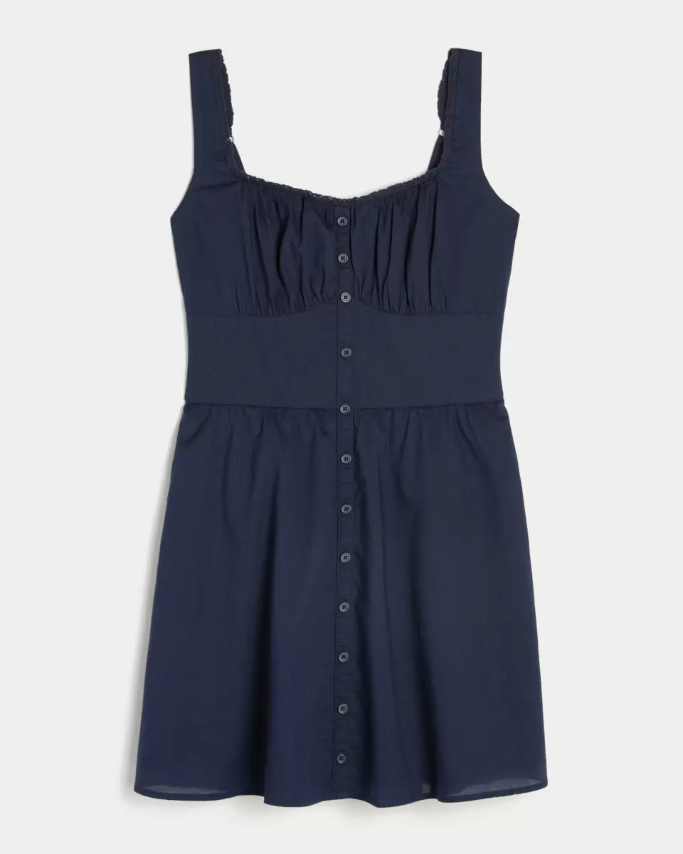 Zwiewna i supermiękka mini sukienka z guzikami z przodu i koronkową lamówką wzdłuż dekoltu. Produkt importowany.