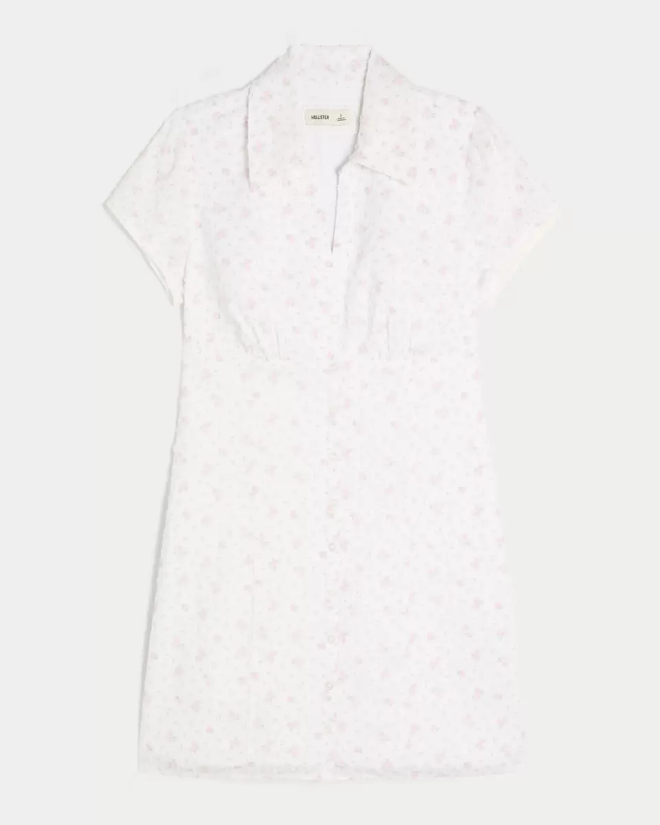 Urocza sukienka koszulowa z guzikami pośrodku i kołnierzykiem. Krótkie rękawy wykończone falbankową koronką. Importowane.