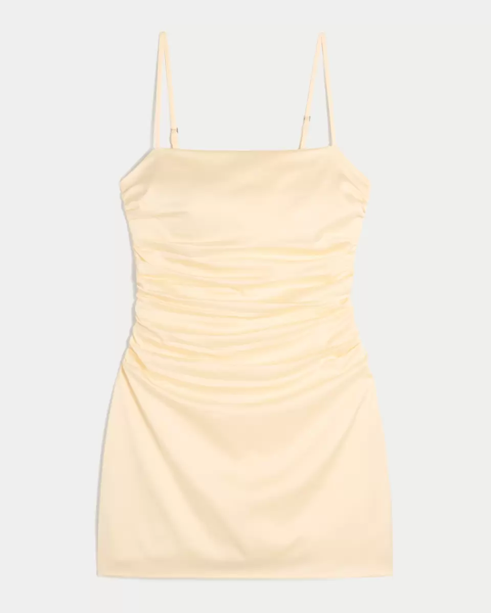 Ta super ładna sukienka ma marszczenia w talii i kokardę z tyłu. Dopasowany krój, regulowane ramiączka, miękka satyna. Importowane.