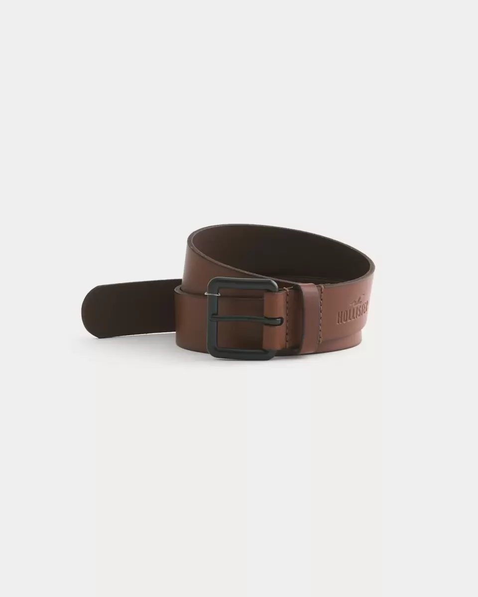 Klasyczny pasek z prawdziwej skóry z kwadratową metalową klamrą i wytłoczonym logo. Importowany.