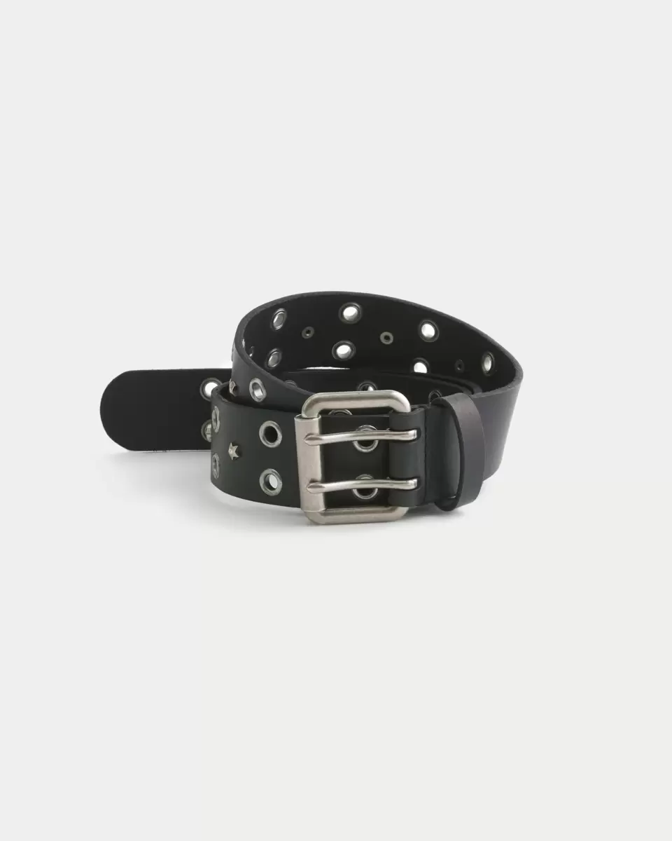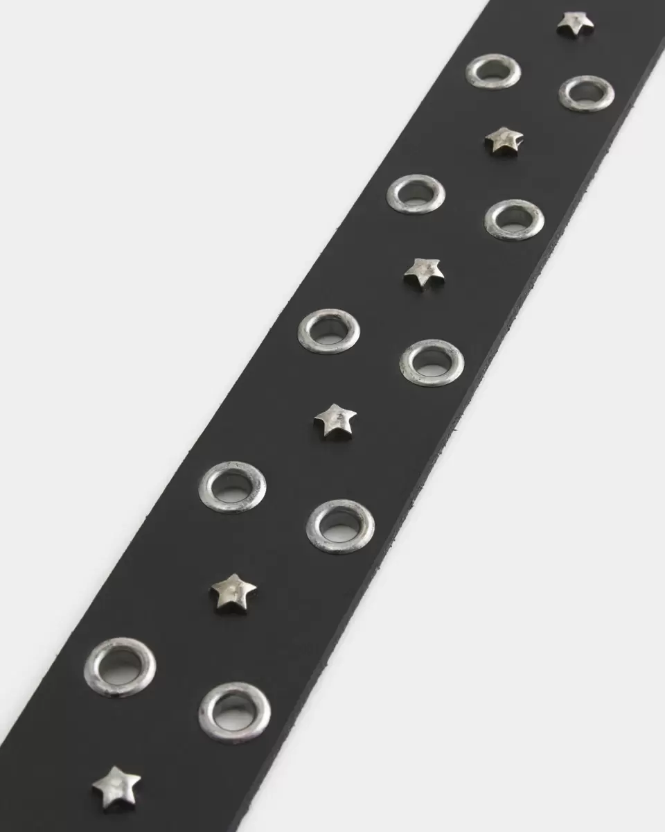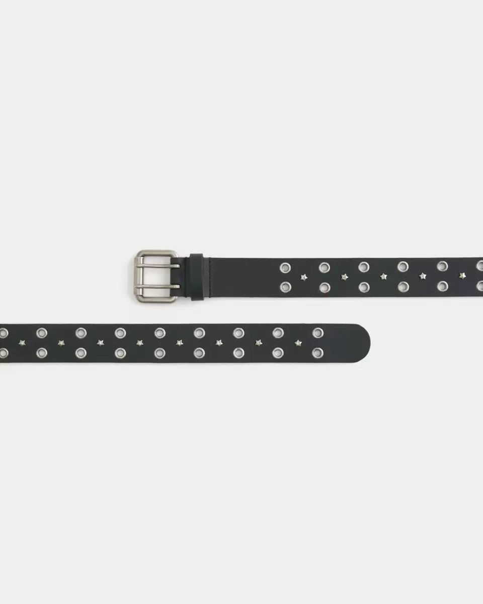 Klasyczny skórzany pasek z ćwiekami w kształcie gwiazdek. Metalowa klamra. Importowany.