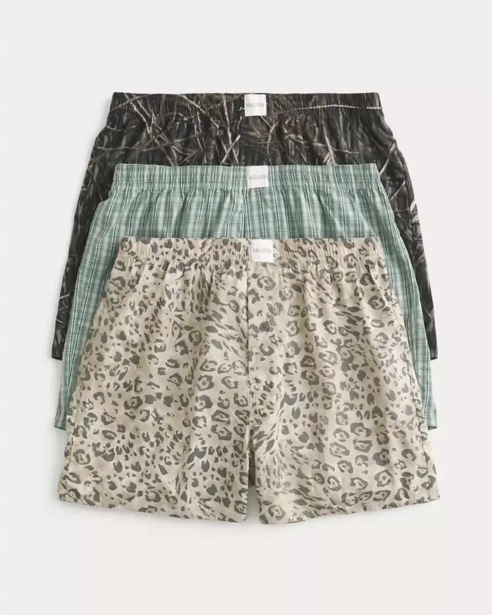 Zawiera 3 pary bawełnianych bokserek: z nadrukiem w panterkę, w kratę i w moro. Miękki pas, metka z logo. Produkt importowany.