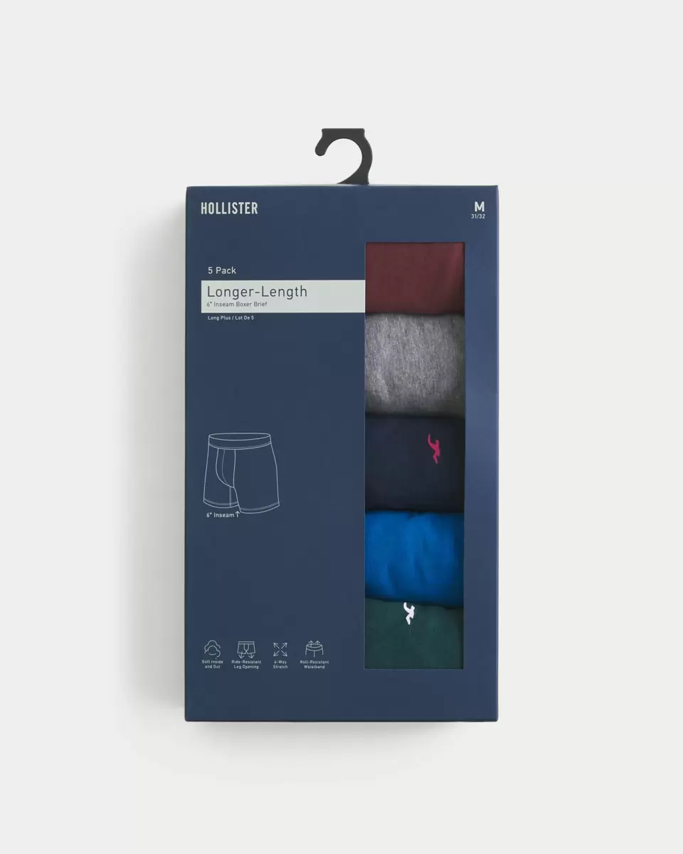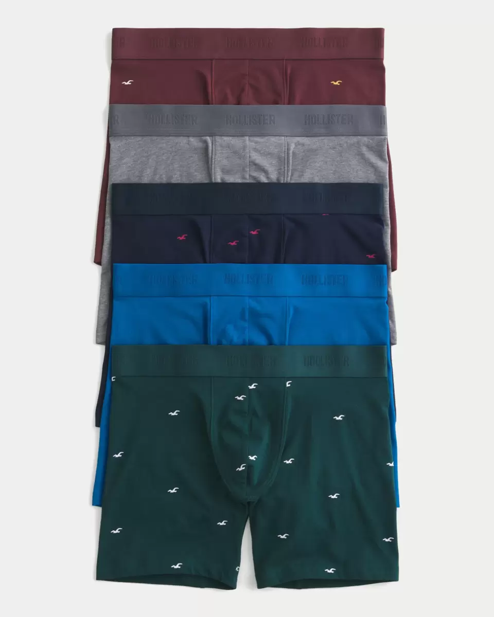 Pakiet 5 sztuk naszych dłuższych bokserek, wykonanych z wygodnej, elastycznej dzianiny z wcięciem w talii dla lepszego wsparcia. Miękka, elastyczna talia z detalami z logo. 3 wzory z logo, 2 jednolite kolory. Importowane.