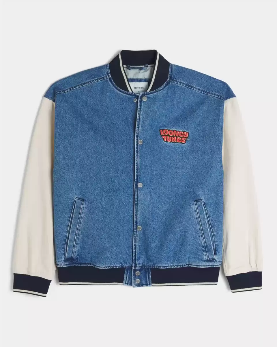 Klasyczna kurtka z denimowym korpusem i rękawami z twillu, z oficjalnym, licencjonowanym haftem Looney Tunes na lewej piersi i plecach. Ściągacze u dołu, zapięcie na zatrzaski, kieszenie.
