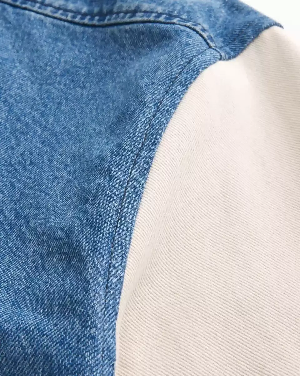 Klasyczna kurtka z denimowym korpusem i rękawami z twillu, z oficjalnym, licencjonowanym haftem Looney Tunes na lewej piersi i plecach. Ściągacze u dołu, zapięcie na zatrzaski, kieszenie. Importowane.
