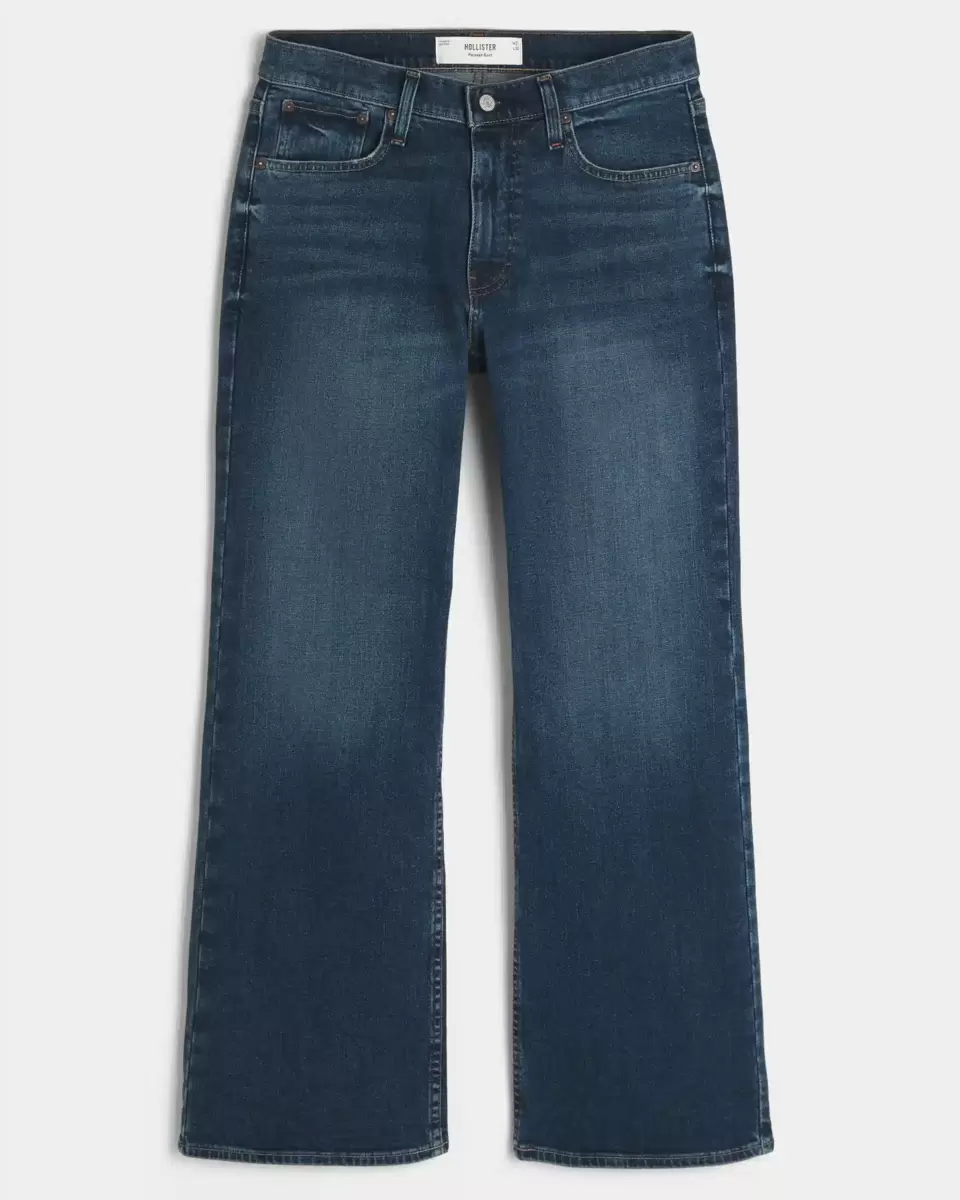 Wygodne jeansy w ciemnym odcieniu, z luźnym dołem nogawek i cholewki. Przetarcia i przetarcia. Importowane.