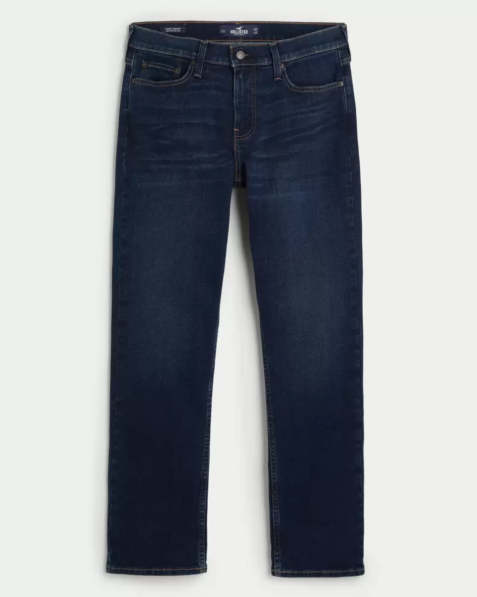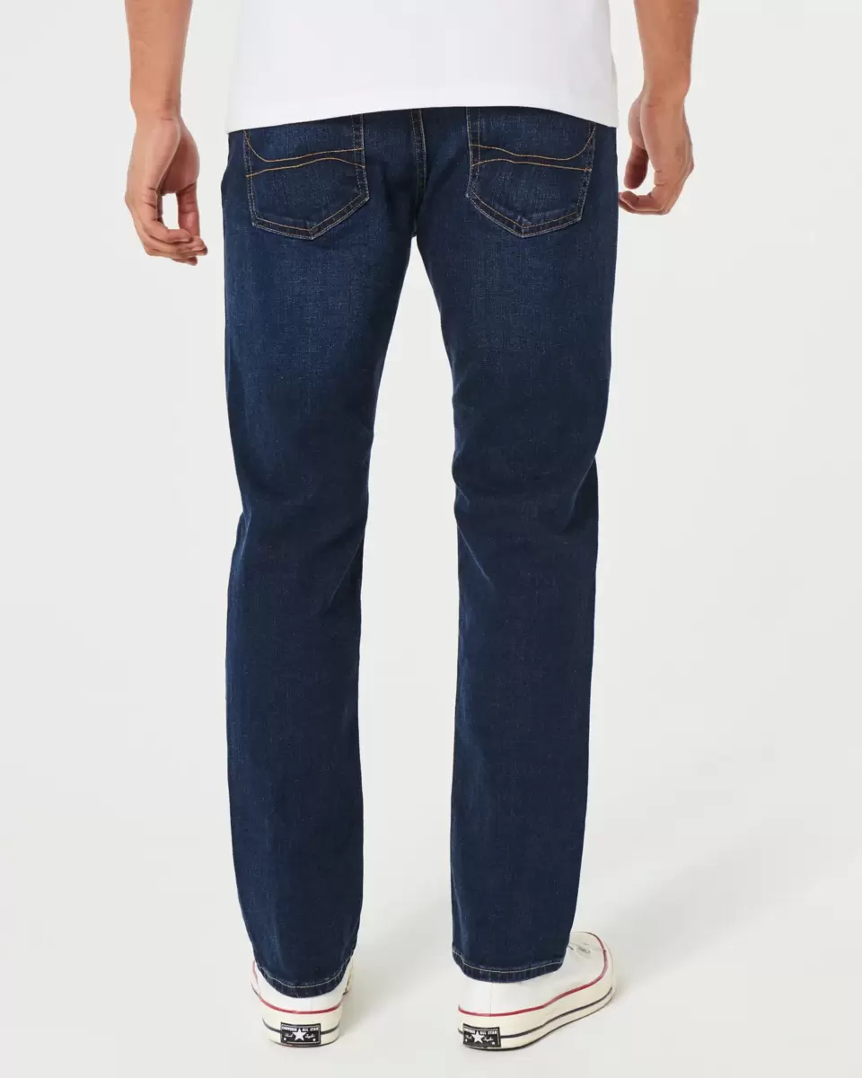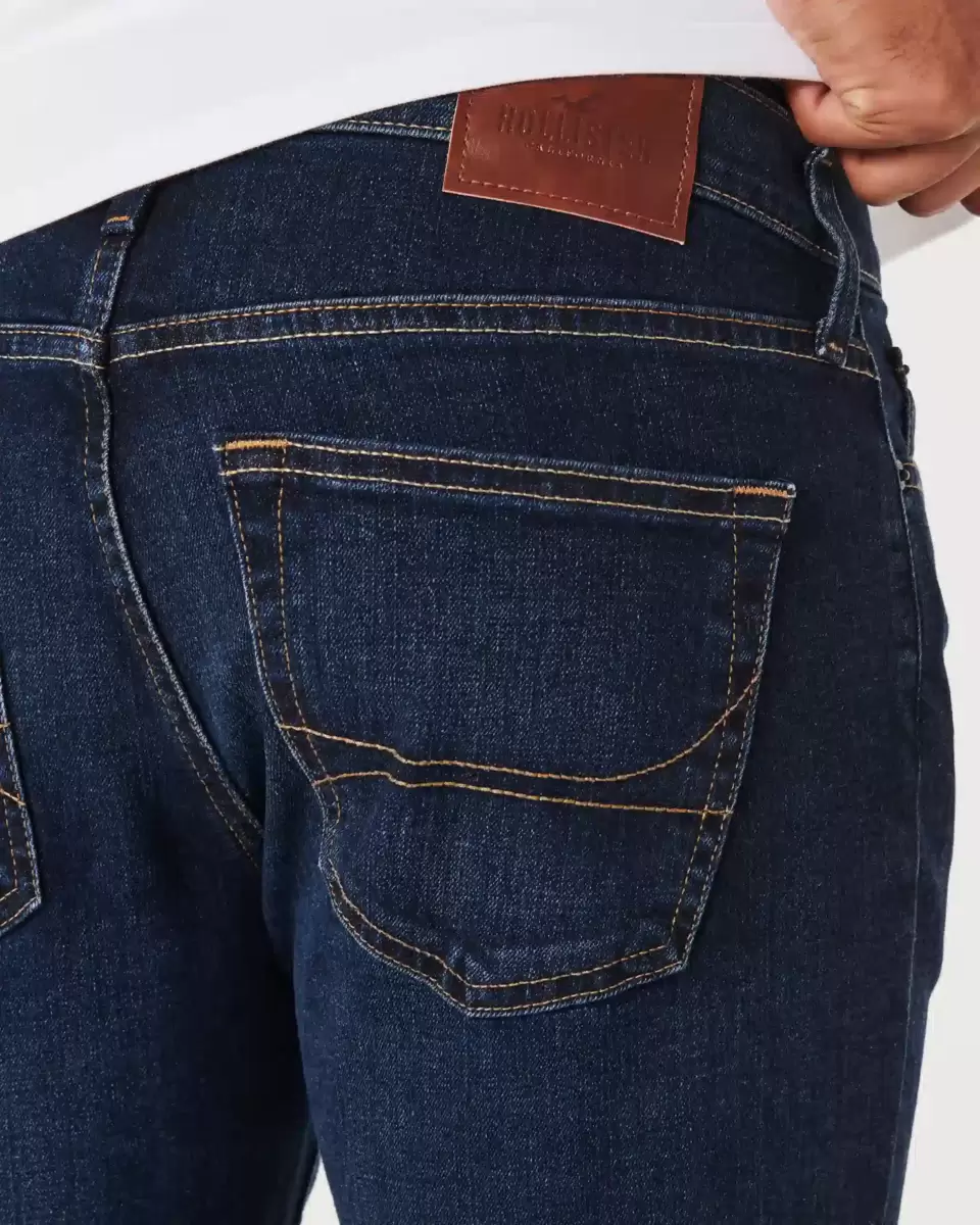 Zaprojektowane z prostym krojem w biodrach i udach, z nogawką o długości 16,75 cala, wykonane z ciemnoniebieskiego denimu z dodatkiem elastycznego materiału Hollister Epic Flex, z pięcioma kieszeniami i kultowym haftem na tylnej kieszeni. Produkt importowany.