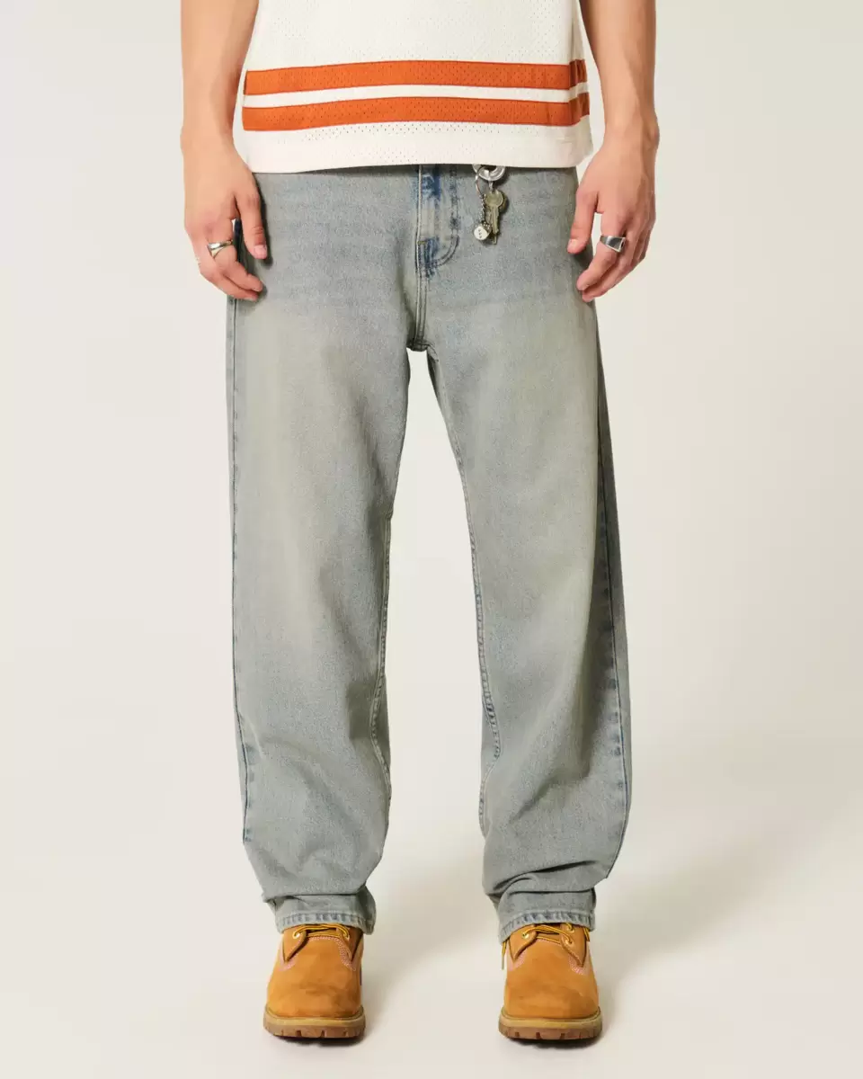 Wygodne jeansy z elastyczną tkaniną, z luźną nogawką. Jasny denim z przetarciami i przetarciami. Importowane.