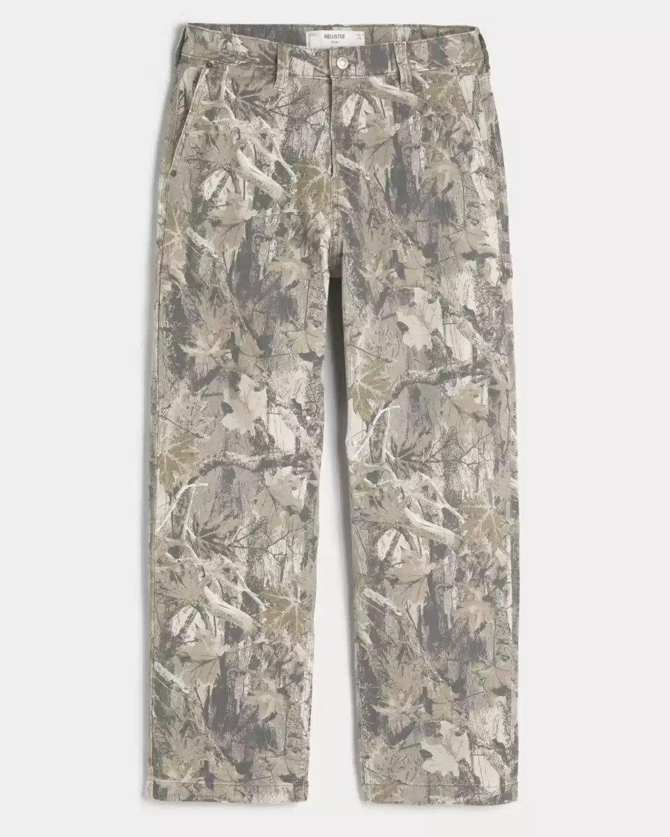 Ultrawygodne spodnie z diagonalu z luźnymi nogawkami, dodatkowymi kieszeniami bocznymi i szlufką malarską po lewej stronie. Wzór kamuflażowy na całej powierzchni. Produkt importowany.