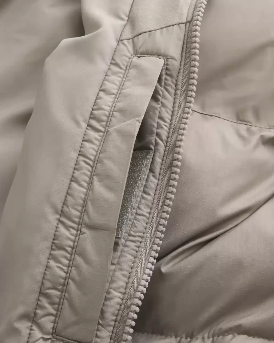 Wypełnienie: 100% włókna poliestrowe z recyklingu / Podszewka: 100% poliester / Powłoka: 100% nylon