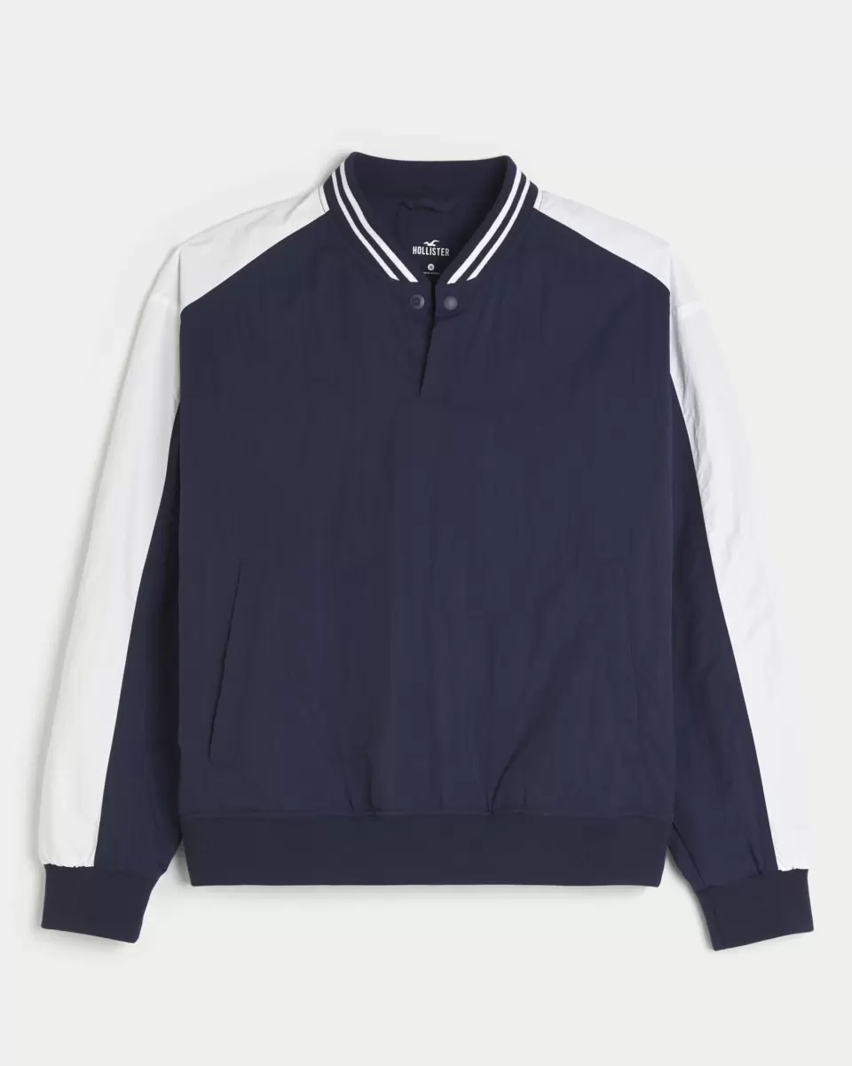 Kurtka typu popover inspirowana stylem vintage, z wyrazistymi, kontrastowymi rękawami, kieszeniami z przodu i kołnierzykiem z daszkiem. Zapięcie na guziki, wykończenia z taśmy. Importowane.