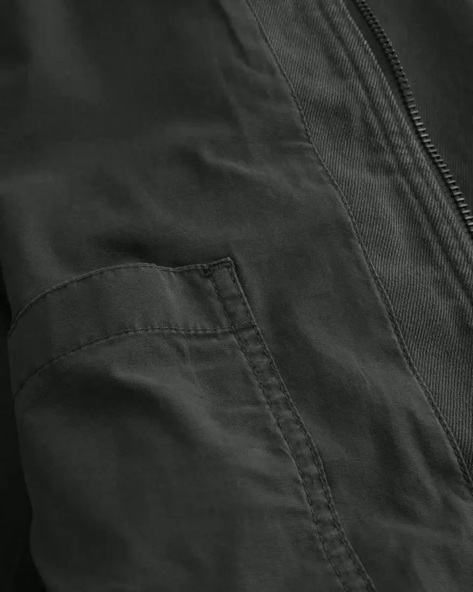 Ta superwygodna kurtka w stylu roboczym ma zapięcie na suwak i kaptur. Kieszenie i wykończenia z taśmy. Importowane.
