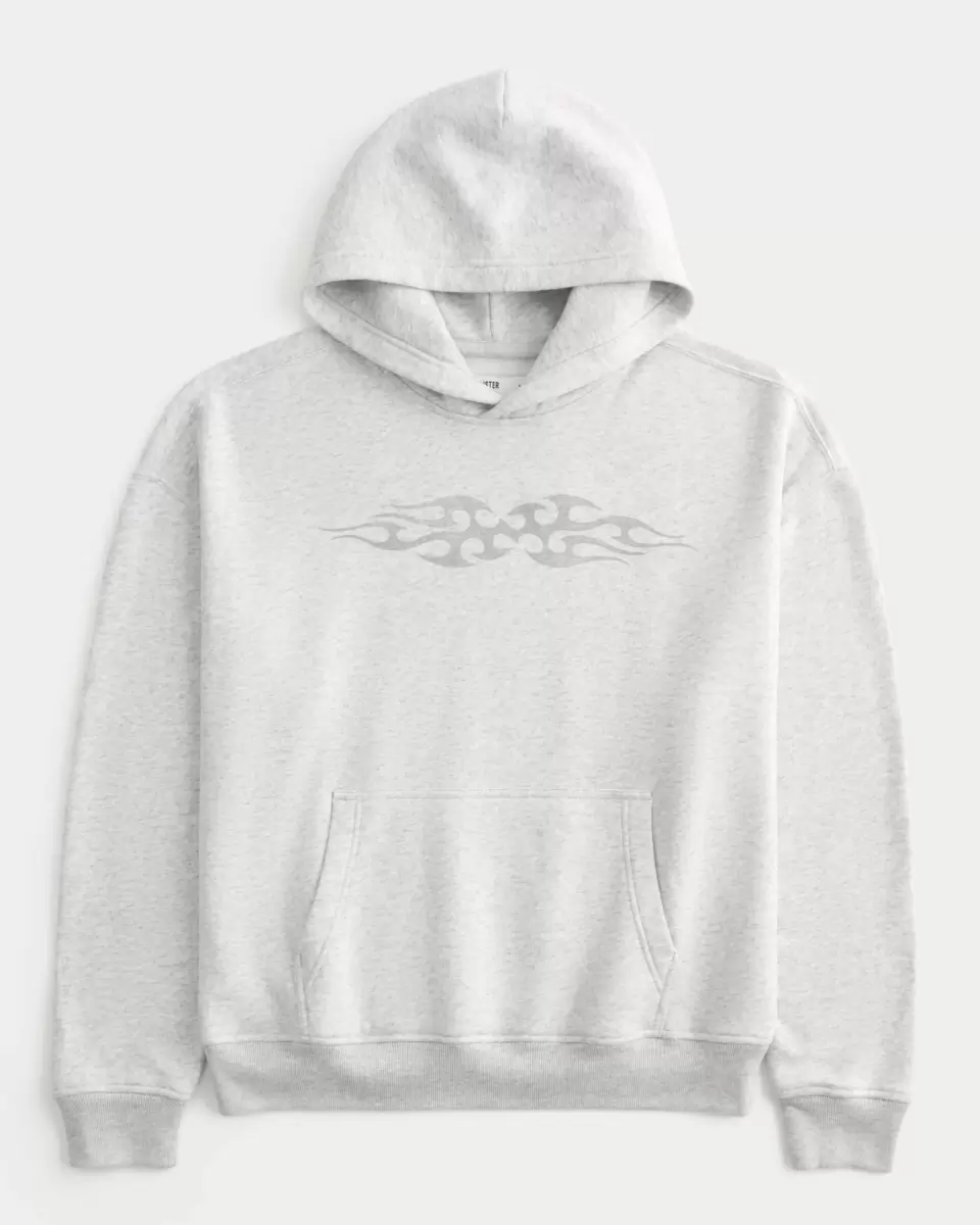 Ta supermiękka bluza z kapturem z polaru ma nadruk płomieni i kieszeń kangurkę z przodu. Kaptur, długie rękawy. Produkt importowany.