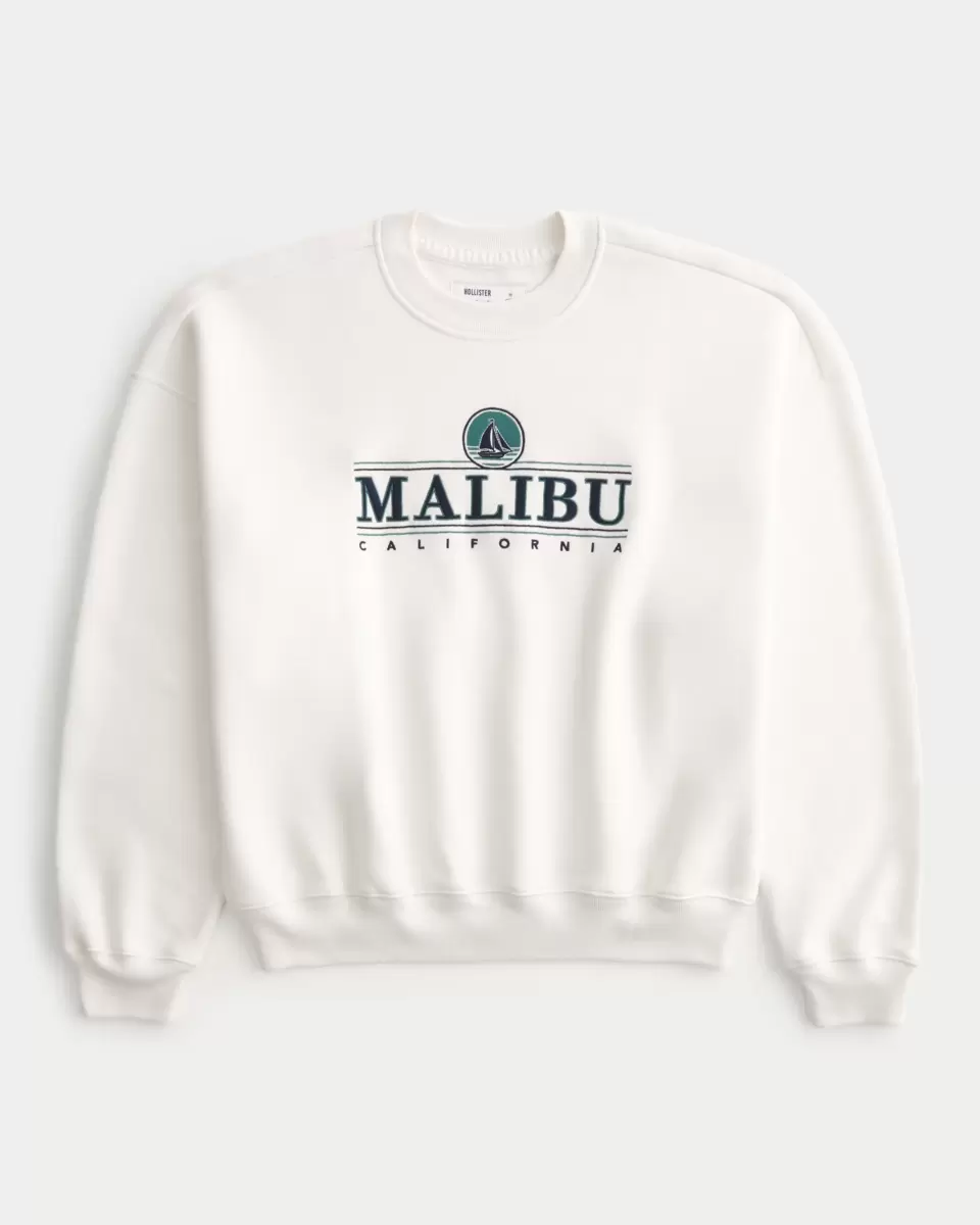 Ta supermiękka bluza polarowa z graficznym haftem i aplikacją Malibu California. Okrągły dekolt, długie rękawy. Luźny krój Baggy Cinch.