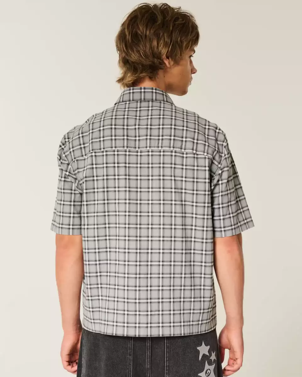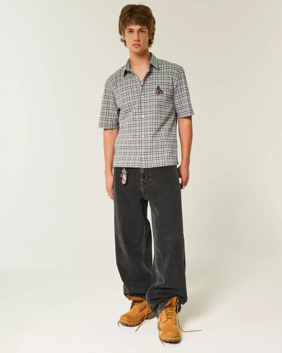 Klasyczna koszula z krótkim rękawem i haftowanym motywem wiśni na lewej piersi. Kołnierzyk, krótkie rękawy, zapięcie na guziki. Pudełkowy krój. Importowane.