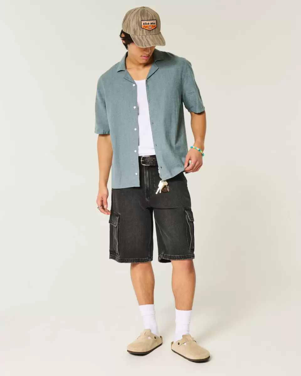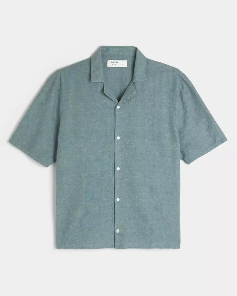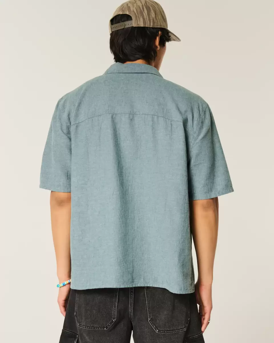Klasyczna koszula z krótkim rękawem z miękkiej mieszanki lnu. Zapięcie na guziki, kołnierzyk. Luźny krój. Produkt importowany.