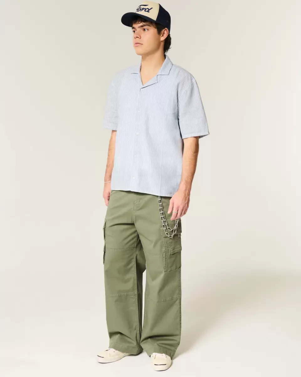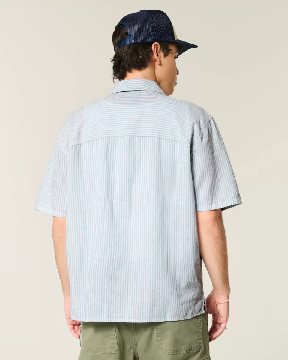 Klasyczna, wygodna koszula z krótkim rękawem, wykonana z miękkiej mieszanki lnu. Zapięcie na guziki, kołnierzyk. Luźny krój. Produkt importowany.