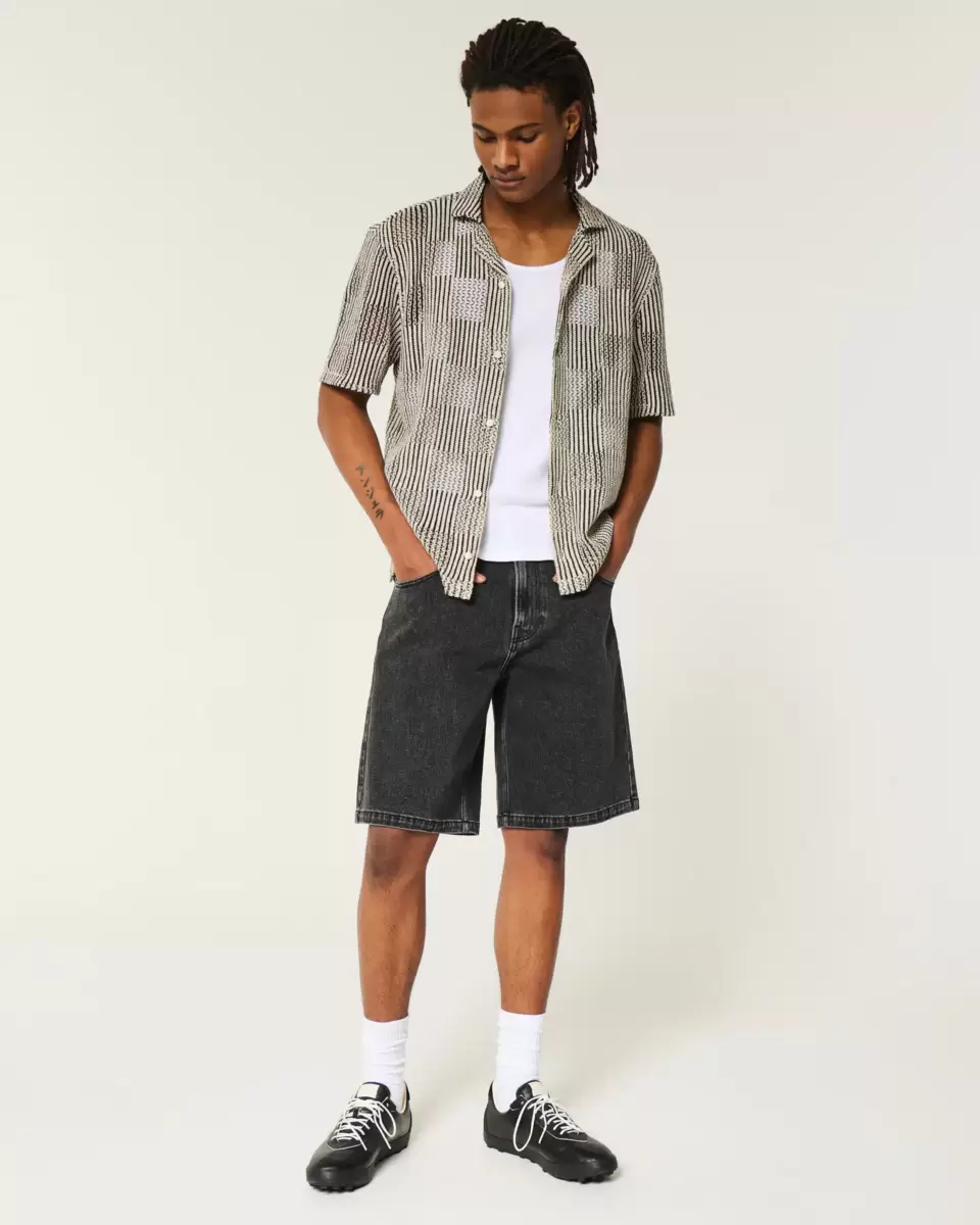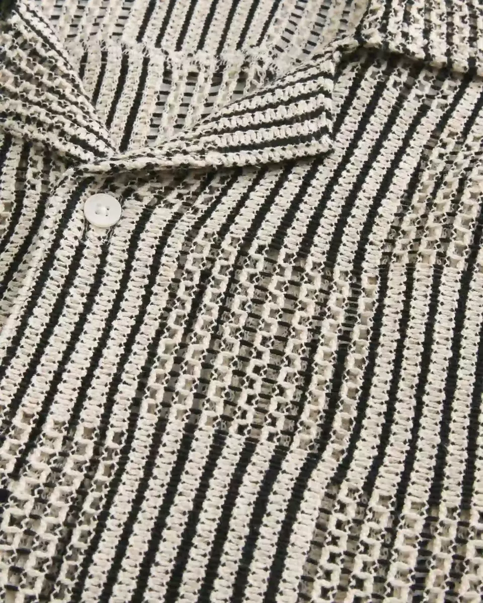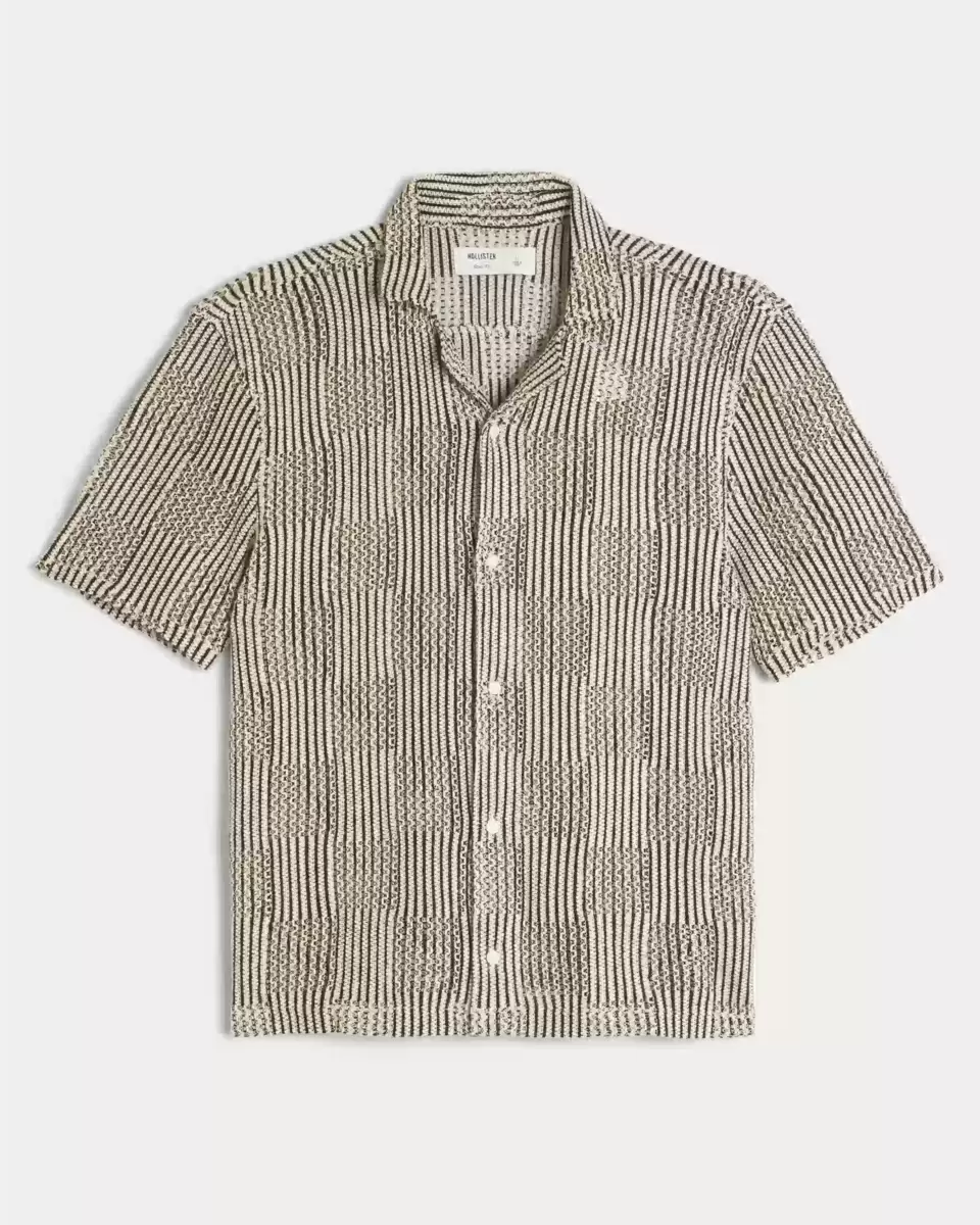 Ultrawygodna koszula z krótkim rękawem, wykonana z materiału w stylu szydełkowym, ze wzorem szachownicy i zapięciem na guziki. Kołnierzyk. Luźny krój. Produkt importowany.