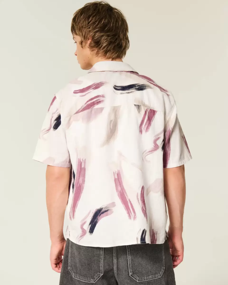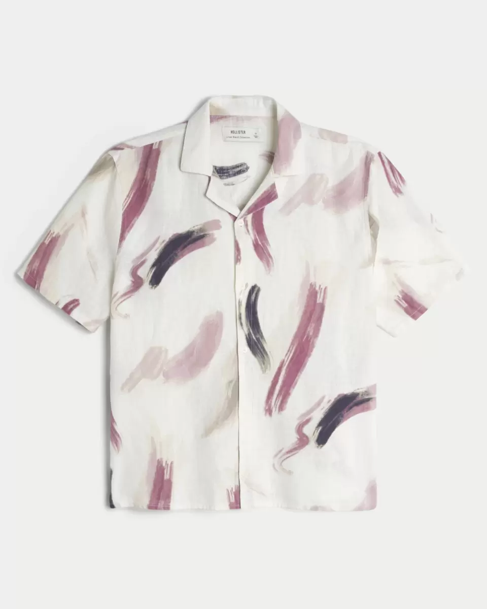 Klasyczna koszula z miękkiej mieszanki lnu, zapinana na guziki. Krótkie rękawy, wzór na całej powierzchni, kołnierzyk. Produkt importowany.