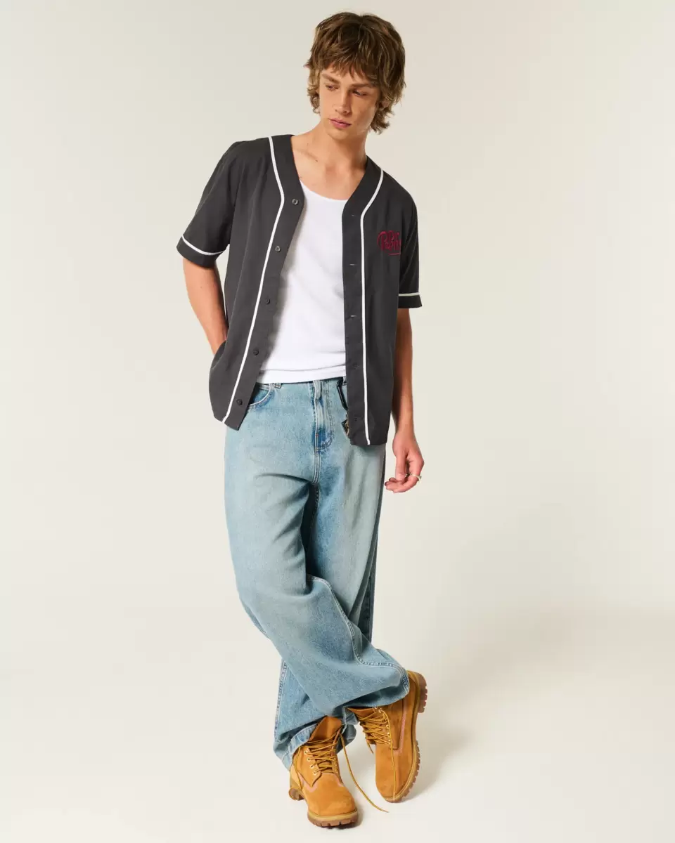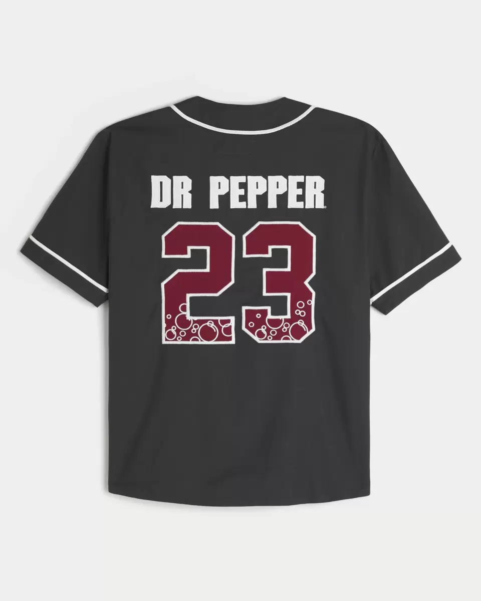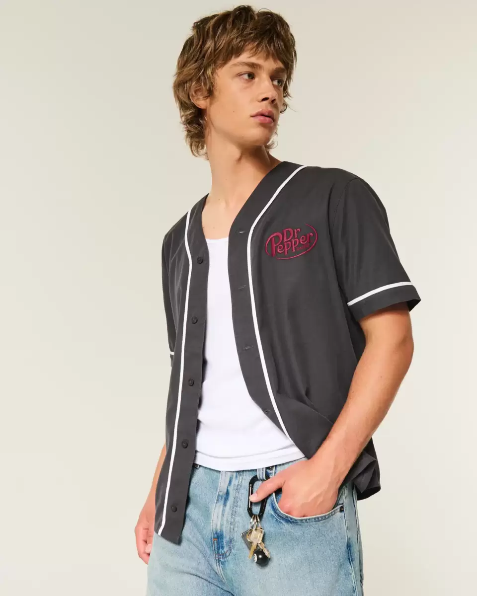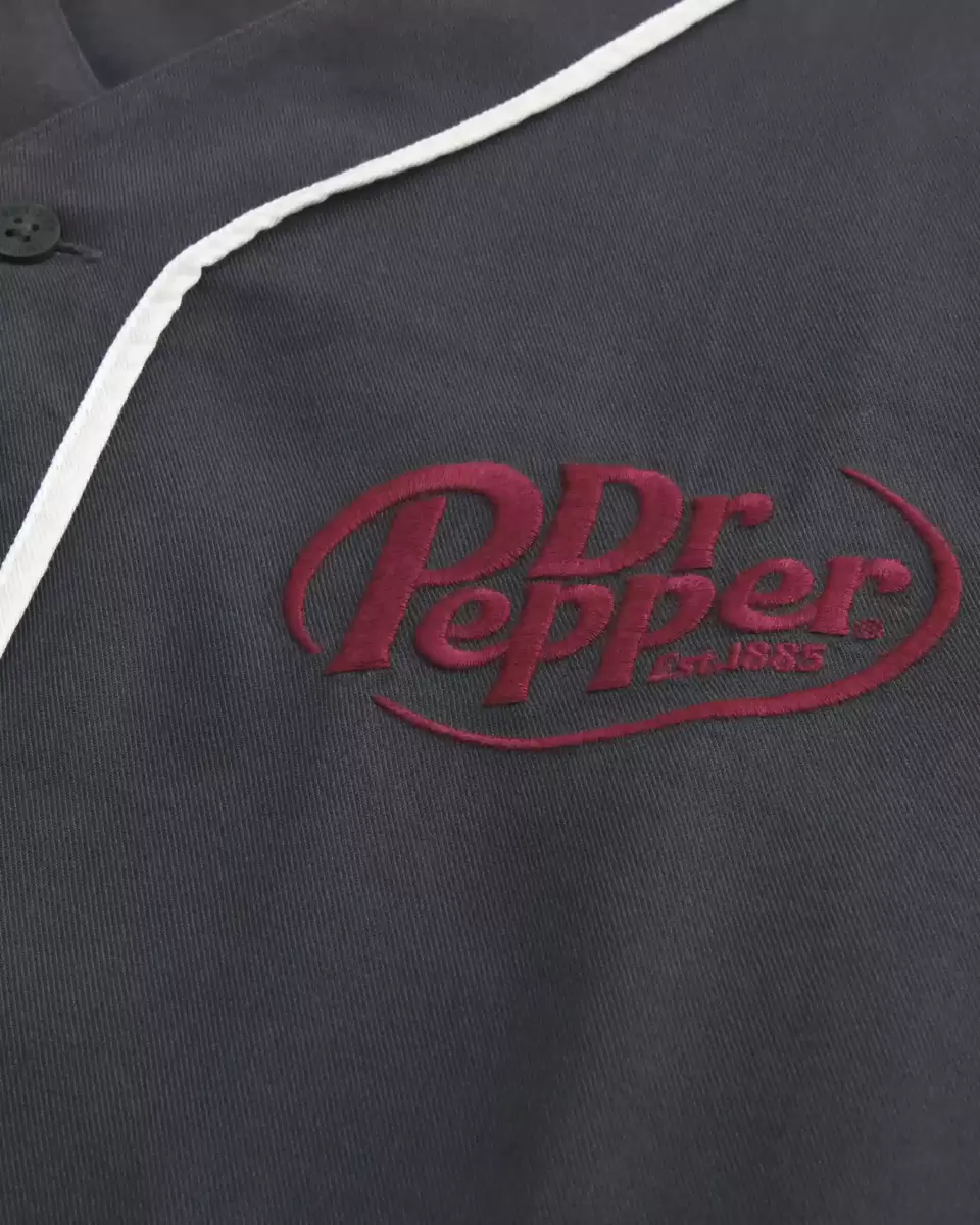 Ta klasyczna koszulka baseballowa ozdobiona jest oficjalnym, licencjonowanym haftem Dr Pepper na lewej piersi i plecach. Zapięcie na guziki, dekolt w serek, krótkie rękawy. Luźny krój. Importowane.