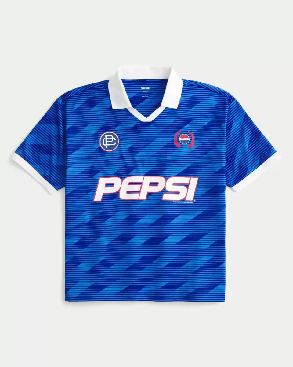 Klasyczna koszulka piłkarska z miękkiego, sportowego materiału z oficjalną licencjonowaną grafiką Pepsi. Grafika z numerem z tyłu, krótkie rękawy i kołnierzyk. Prosty krój. Produkt importowany.