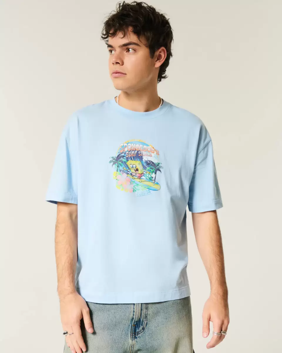 Supermiękka koszulka ze 100% bawełny z oficjalną, licencjonowaną grafiką SpongeBoba Kanciastoportego Surf Shack. Okrągły dekolt, krótkie rękawy. Prosty, skrócony krój. Produkt importowany.