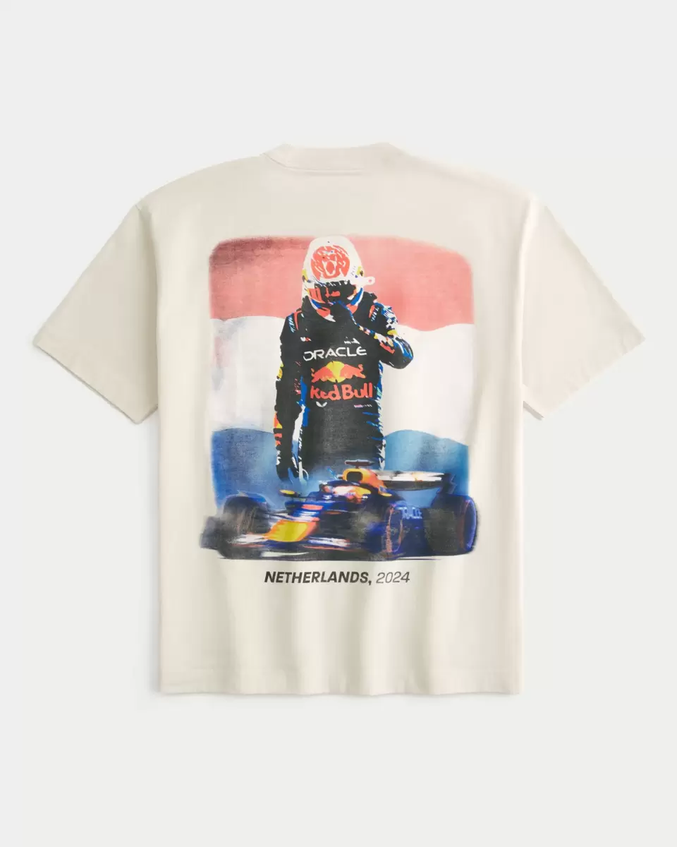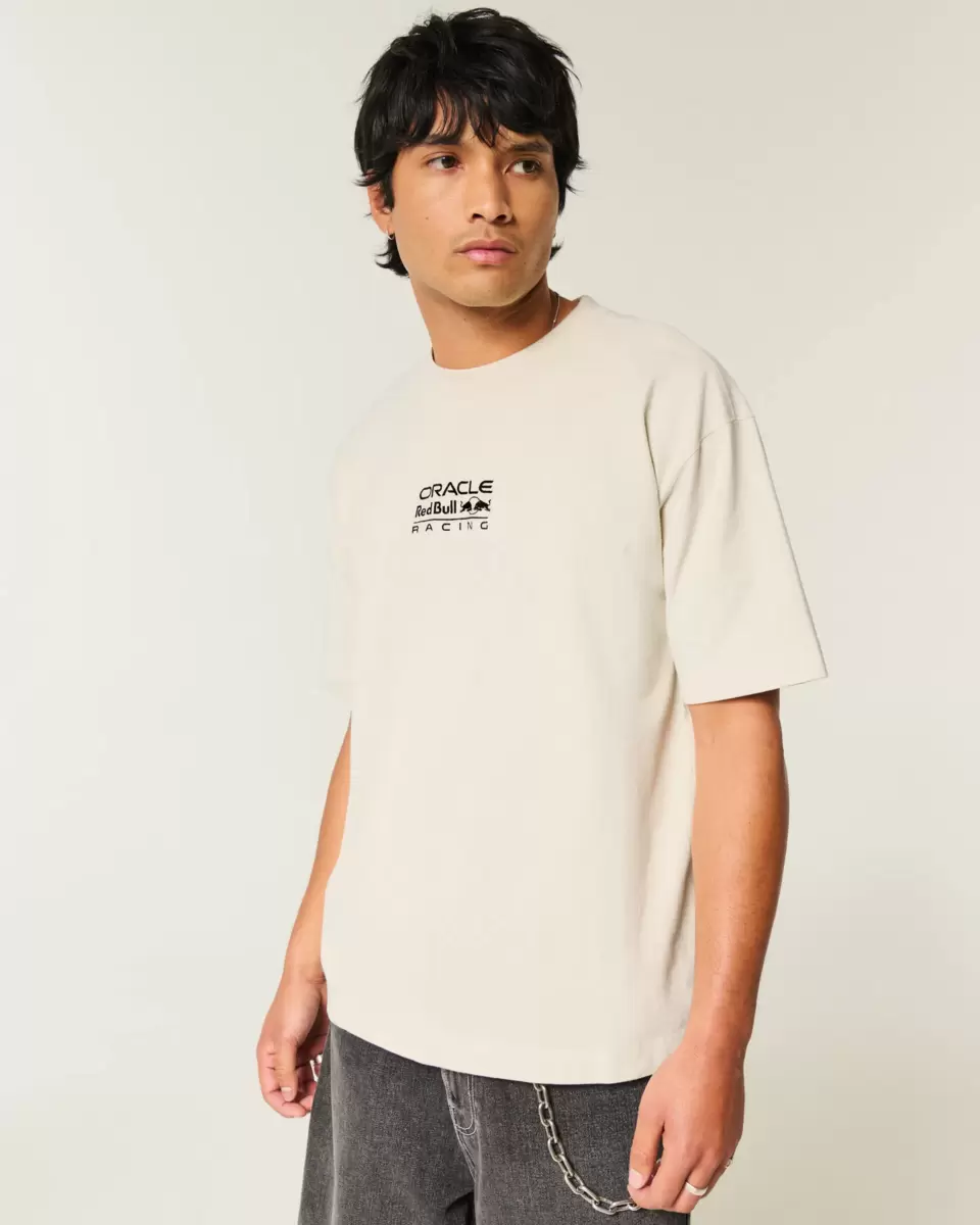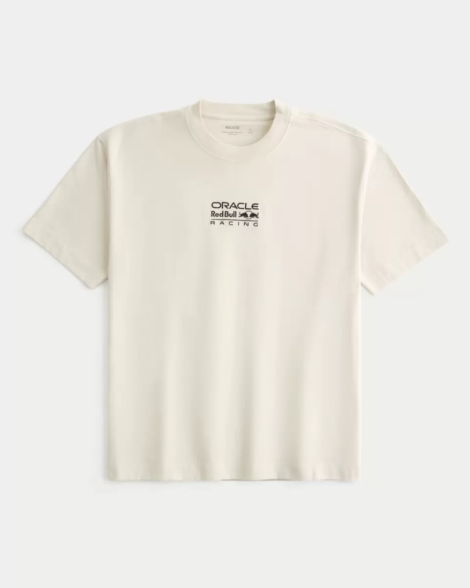 Wygodna koszulka z supermiękkiej, grubej bawełny 100%, z oficjalnym haftem Oracle Red Bull Racing z przodu i nadrukiem z tyłu. Okrągły dekolt, krótkie rękawy. Luźny krój. Importowane.