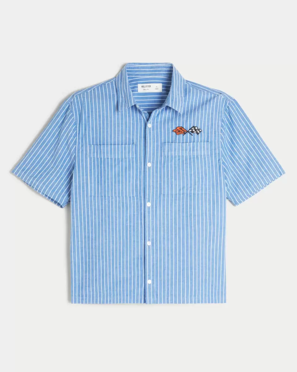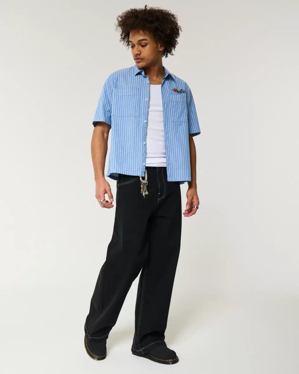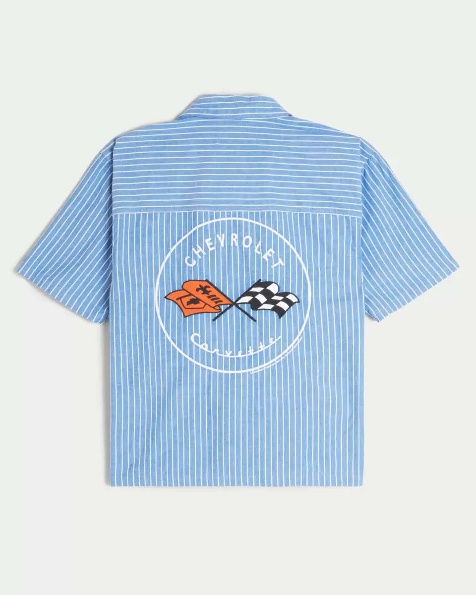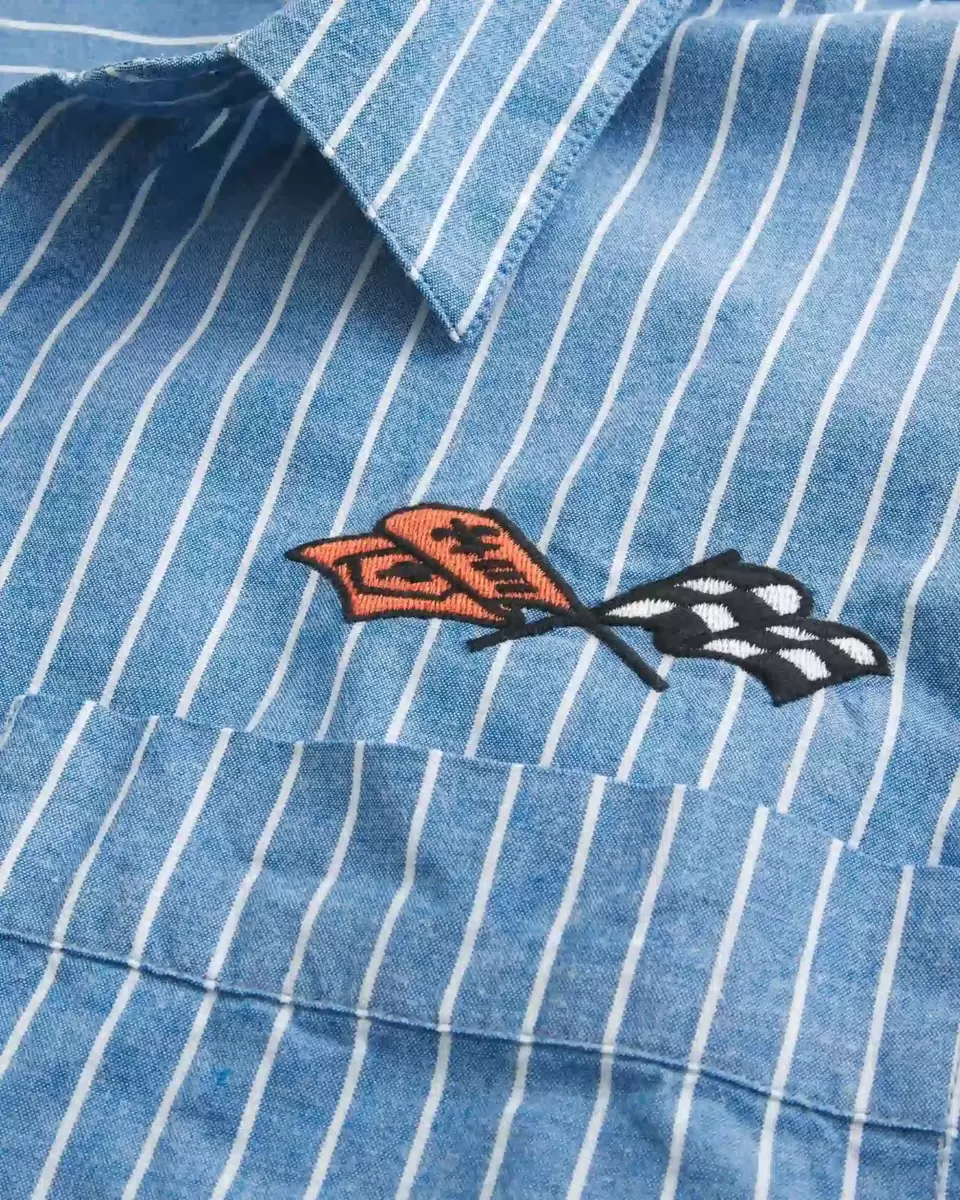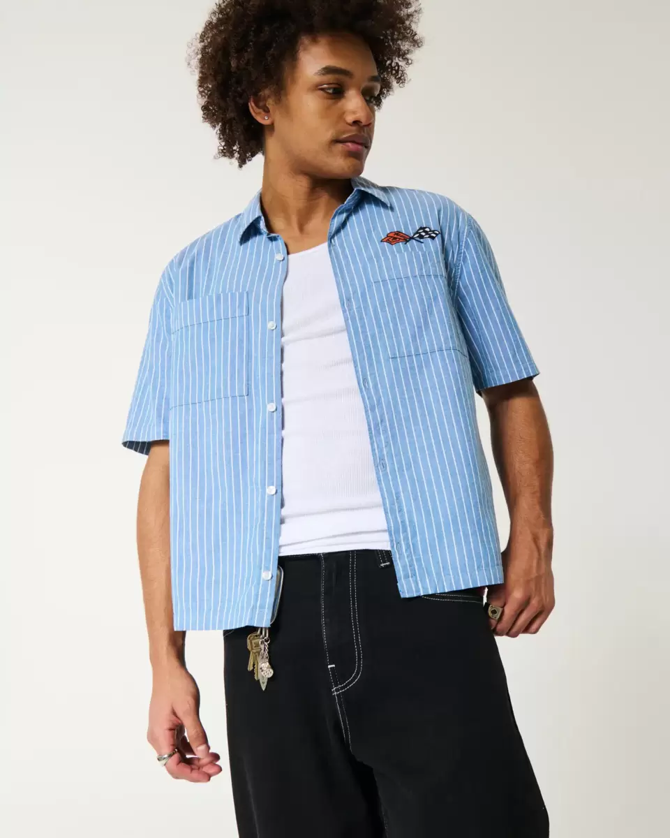 Klasyczna koszula w stylu roboczym z krótkimi rękawami i zapięciem na guziki. Oficjalny, licencjonowany haft graficzny Chevrolet Corvette na lewej piersi i plecach, kołnierzyk, krótkie rękawy, kieszenie na piersi. Pudełkowy krój. Importowane.