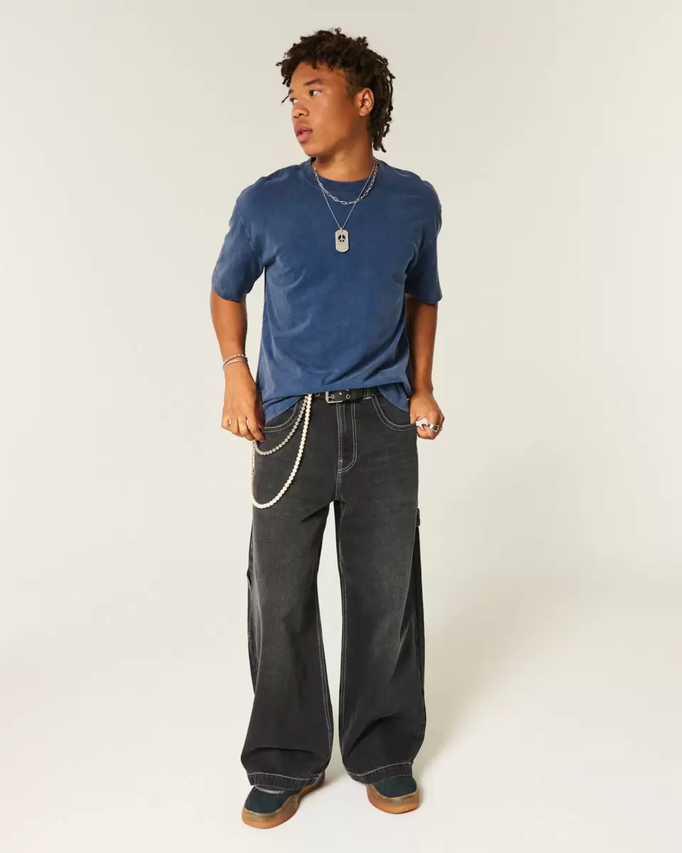 Supermiękka, gruba koszulka ze 100% bawełny, z okrągłym dekoltem i krótkimi rękawami. Wykończenie z efektem sprania. Luźny krój.