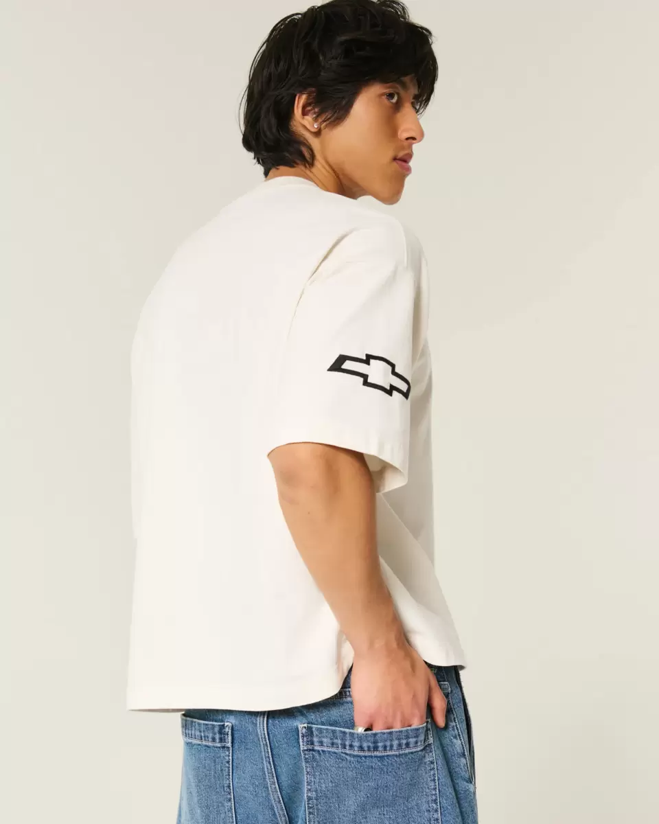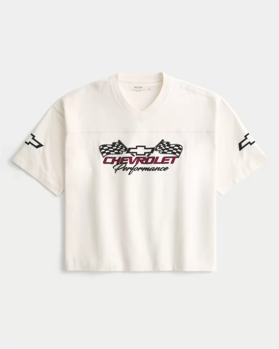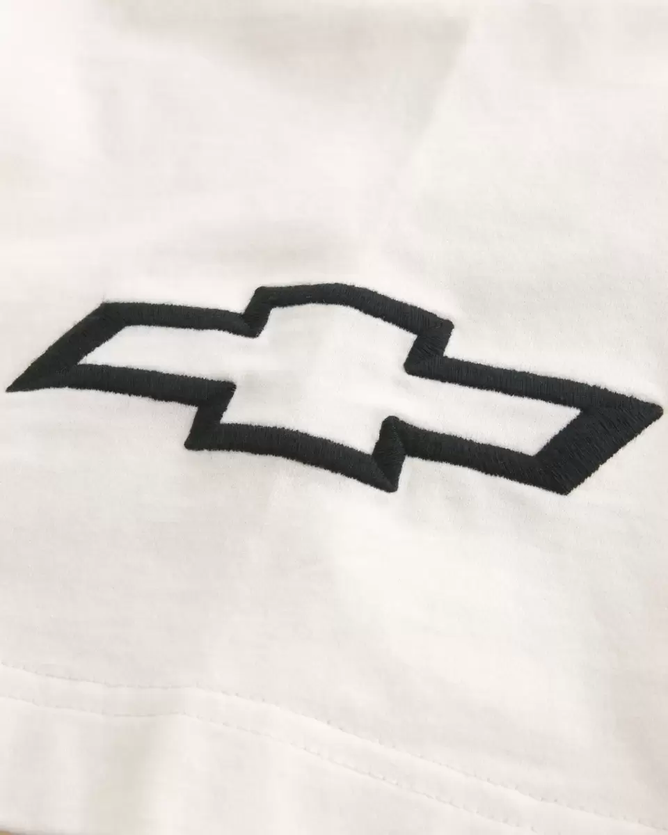 Supermiękka koszulka piłkarska z grubej bawełny, z oficjalnym, licencjonowanym haftem graficznym Chevrolet. Dekolt w serek, krótkie rękawy. Luźny, krótki krój. Produkt importowany.