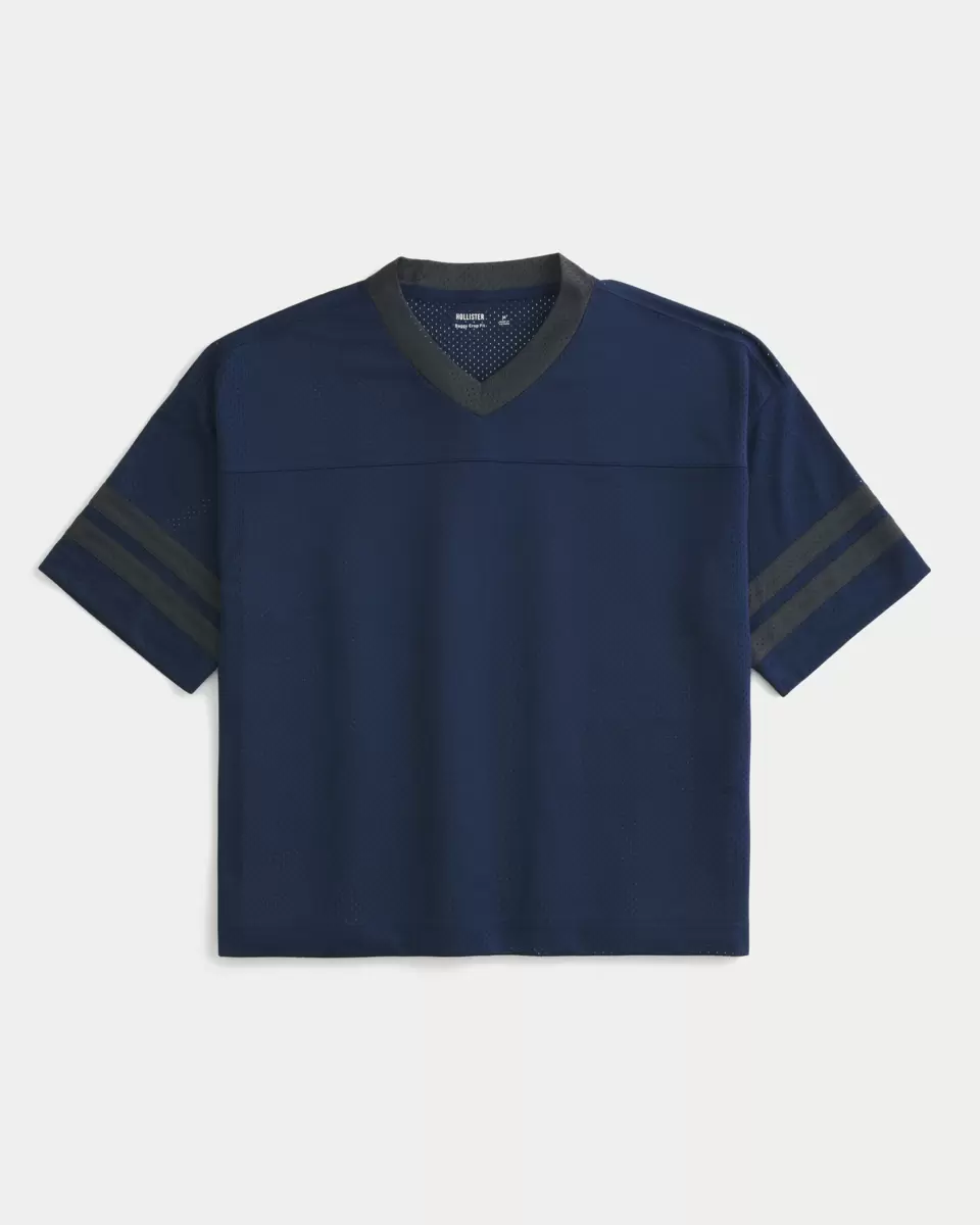 Klasyczna koszulka piłkarska z siateczki z dekoltem w serek i krótkimi rękawami. Luźny, krótki krój. Produkt importowany.