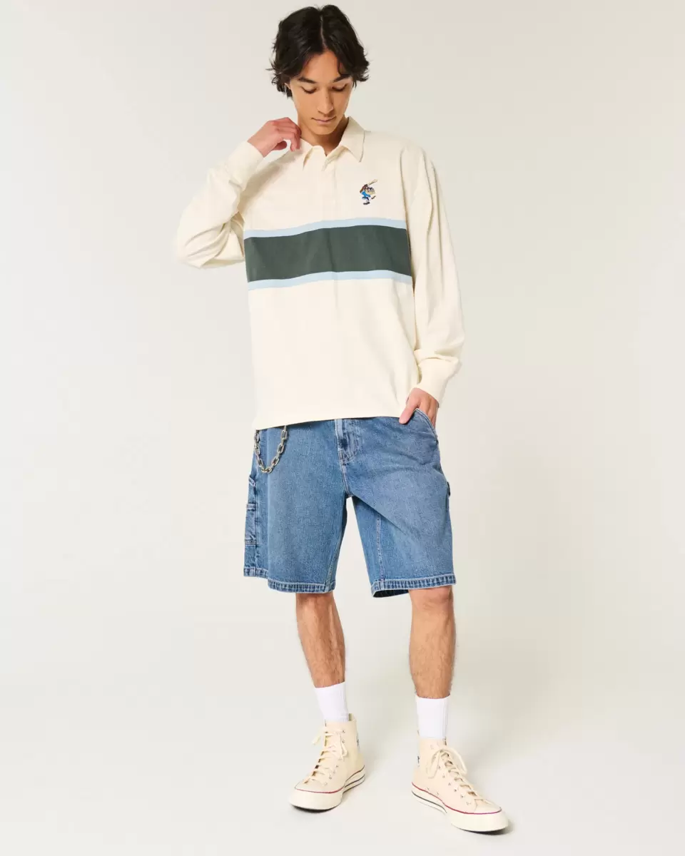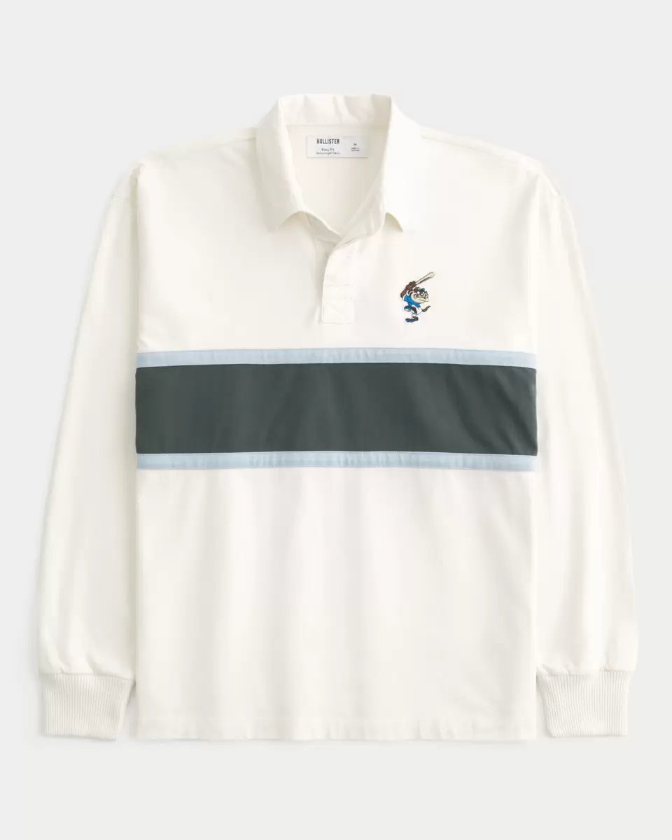 Koszulka polo do rugby z długim rękawem, wykonana z grubej bawełny w 100% z pasków i oficjalnym haftem graficznym z Diabłem Tasmańskim na licencji Looney Tunes po lewej stronie klatki piersiowej. Kołnierzyk, zapięcie na guziki. Luźny krój. Importowane.