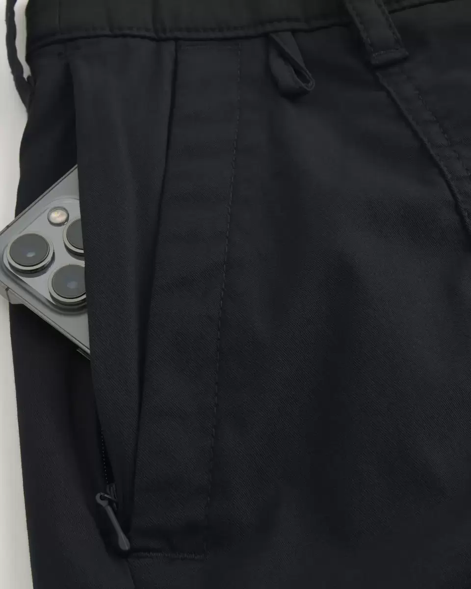 Ultrawygodne spodenki golfowe z naszego materiału chłodzącego, z kieszeniami użytkowymi, kieszenią na suwak po prawej stronie i szlufką na T-shirt w pasie. Sięgają nad kolano. Importowane.
