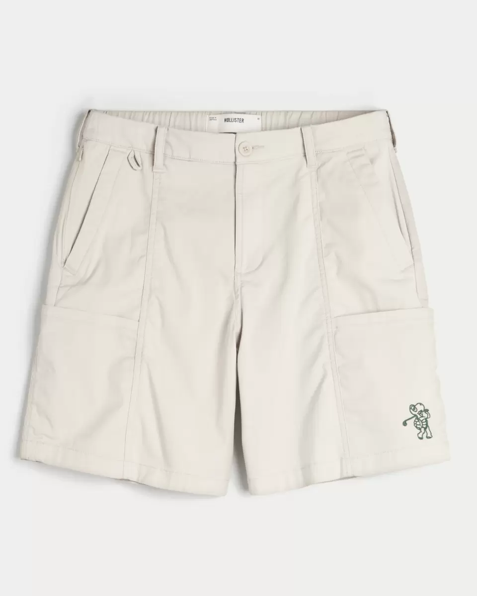 Ultrawygodne szorty golfowe z naszego przewiewnego materiału, z haftowanym motywem golfowym na lewej nogawce, kieszeniami użytkowymi, kieszenią zapinaną na suwak po prawej stronie i szlufką na koszulkę w pasie. Sięgają nad kolano. Importowane.