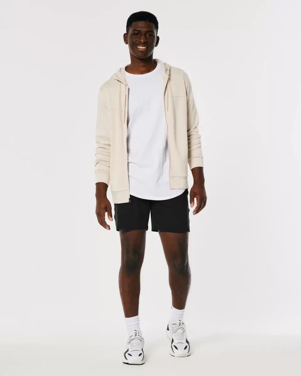 Zaprojektowane z oddychającej, rozciągliwej w czterech kierunkach, odprowadzającej wilgoć tkaniny Recharge o supermiękkim, szczotkowanym wykończeniu. Te wygodne szorty mają przednie kieszenie zapinane na zamek i ściągacz w pasie. Długość wewnętrzna nogawki 7 cali. Importowane.