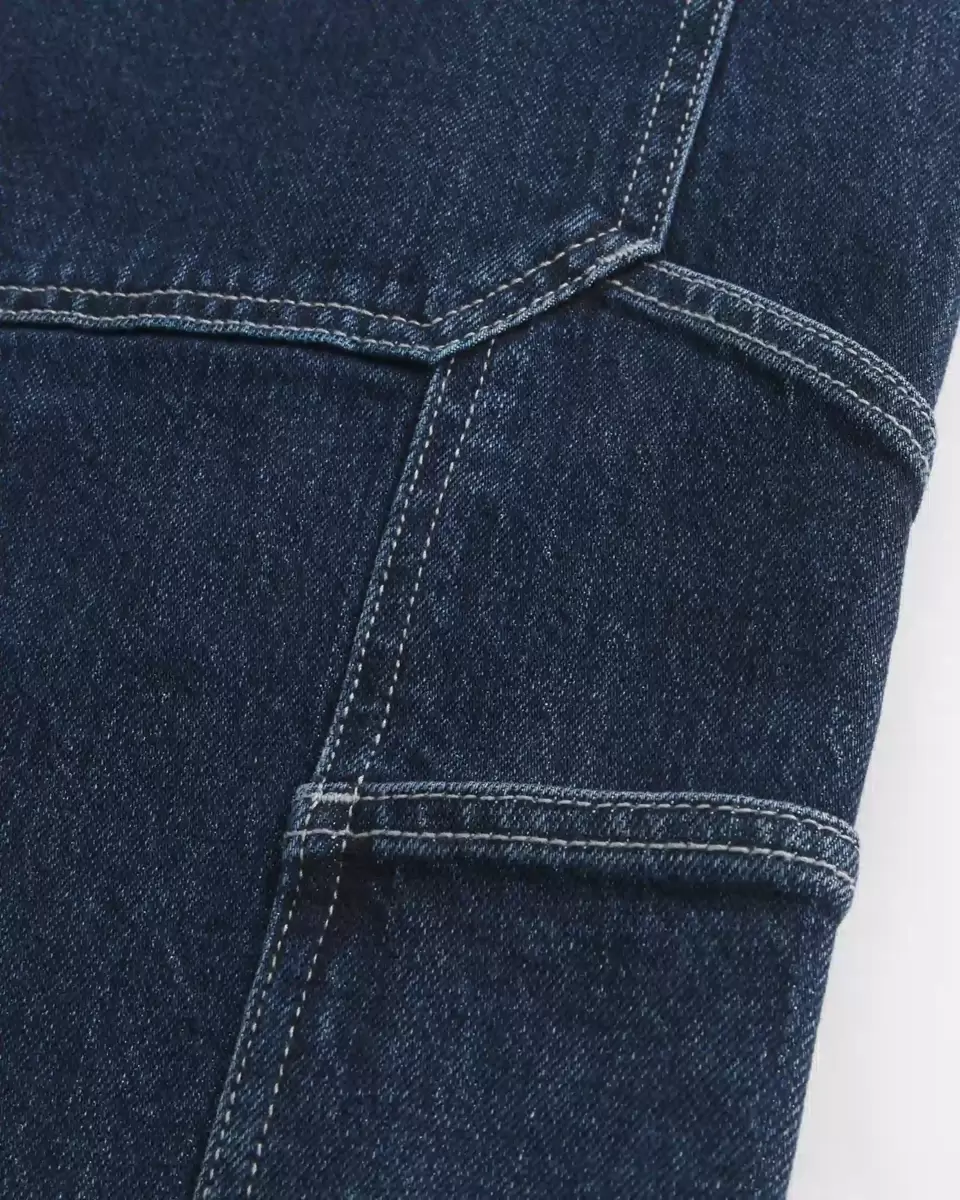 Wygodne szorty jeansowe z luźną nogawką. Pętelka malarska po prawej stronie, dodatkowe kieszenie.