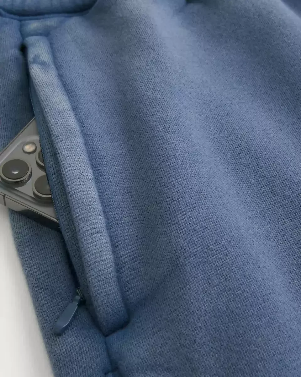 Supermiękkie, polarowe szorty z luźną nogawką sięgającą do połowy uda. Ściągacz w pasie, kieszenie, prawa kieszeń zapinana na zamek, sprany wygląd, haftowane logo u dołu po lewej stronie. Importowane.